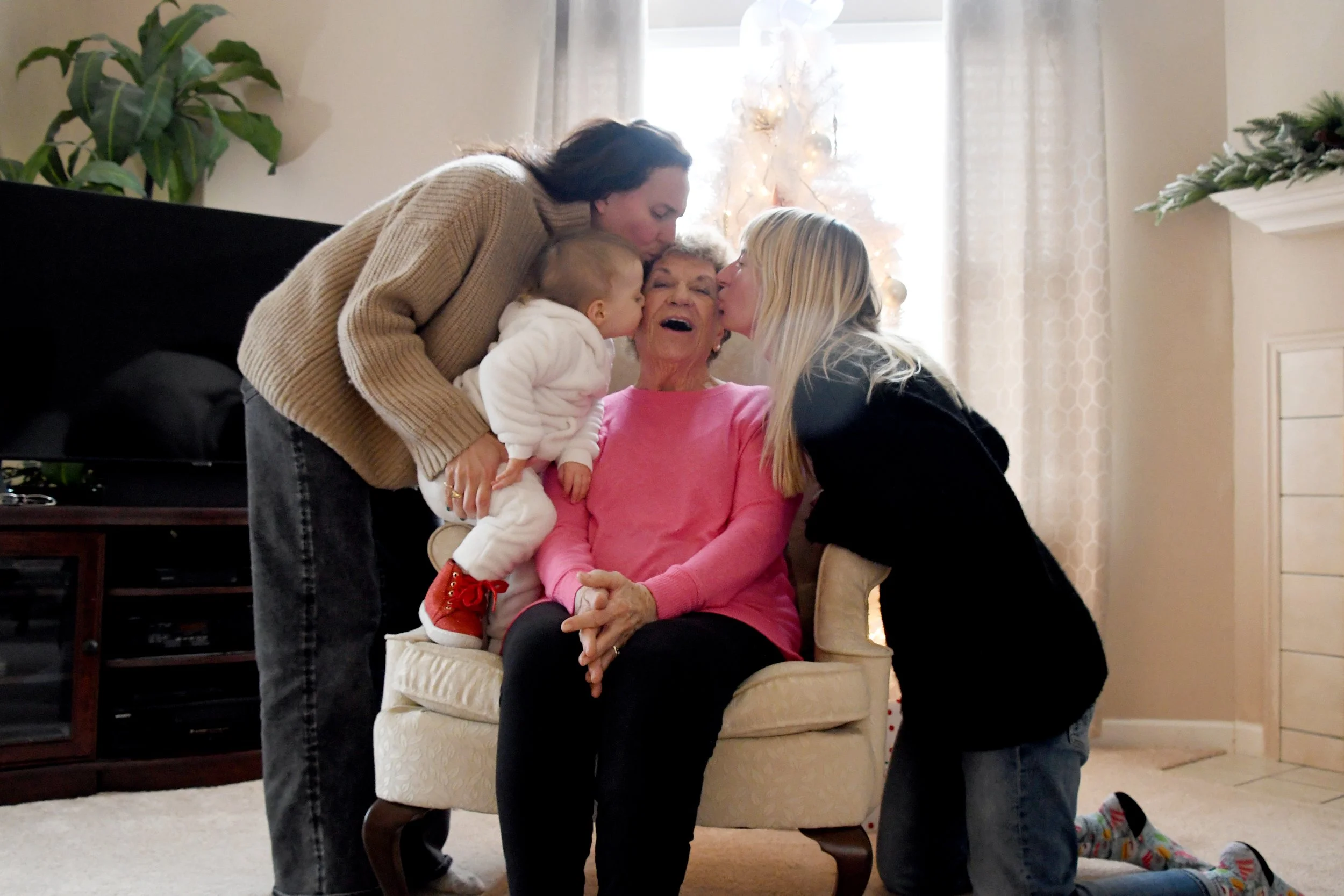 Several days before the Garvin Christmas morning, we spent a day with Great-Grandma Marcia. Bronte played with toys as Marcia watched, and we ate a home made breakfast casserole (because what comes from Marcia’s hands is always a home cooked meal) and delicious iced tea. We played cards as Bronte read through Grandma Marcia’s Christmas Cards and rummaged through her drawers, finding bags of pennies (R.I.P.).