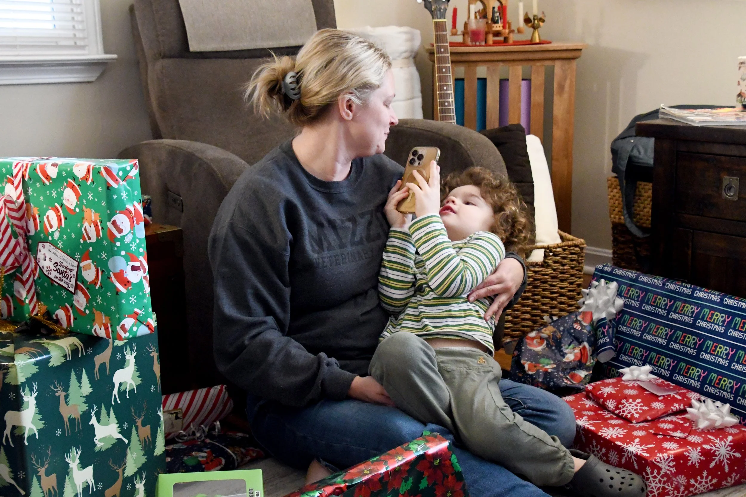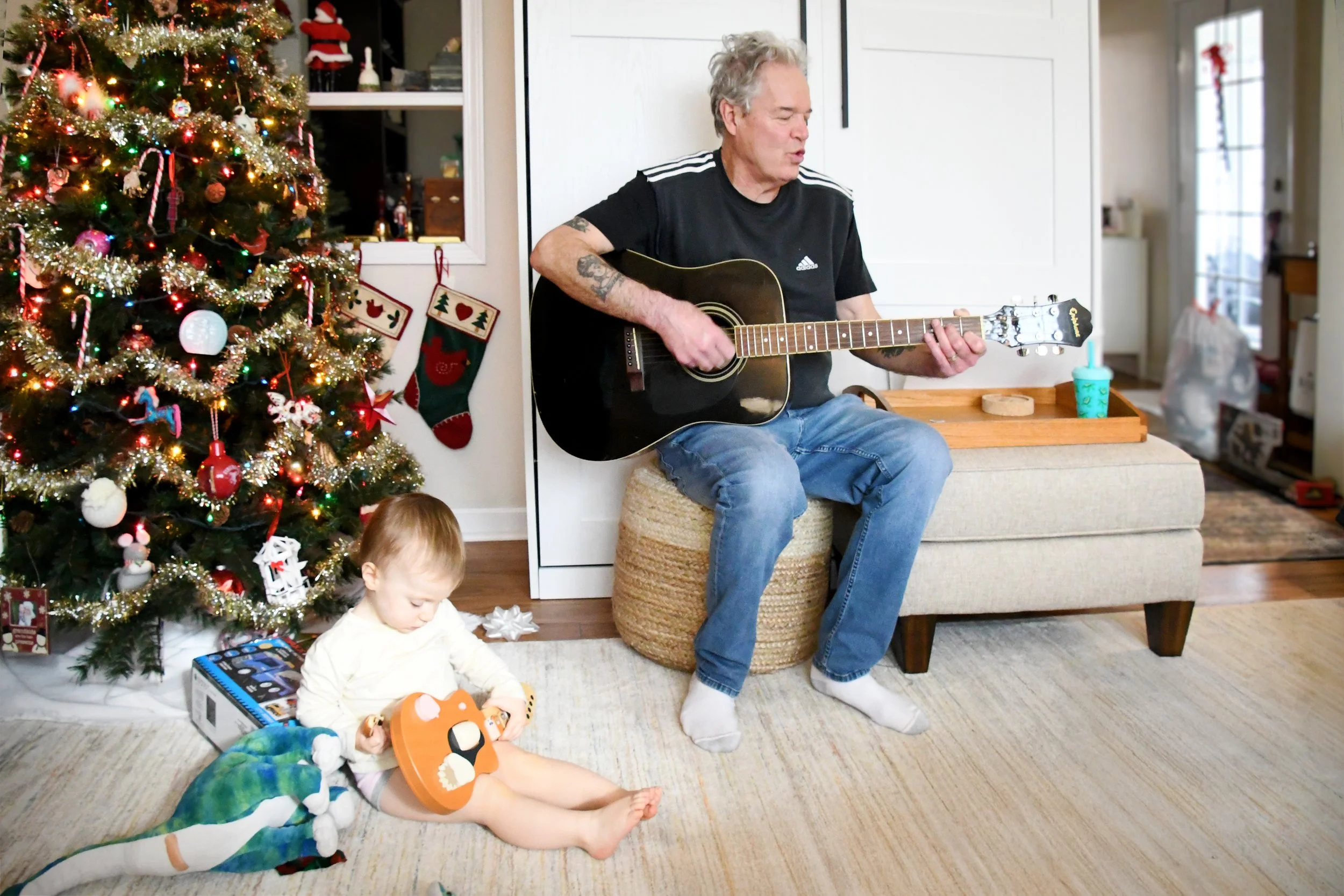 Christmas morning at the McCarty household held its own happy rhythm. We unwrapped gifts, and Bronte was given her first guitar! We had a fun Christmas kids music on, and Julia made towering hot chocolates with marshmallows. After presents were done, Dad sang “Jingle Bells” on guitar, and we all joined in singing and swaying as if it had always been a tradition. Bronte even picked up her instrument for it!