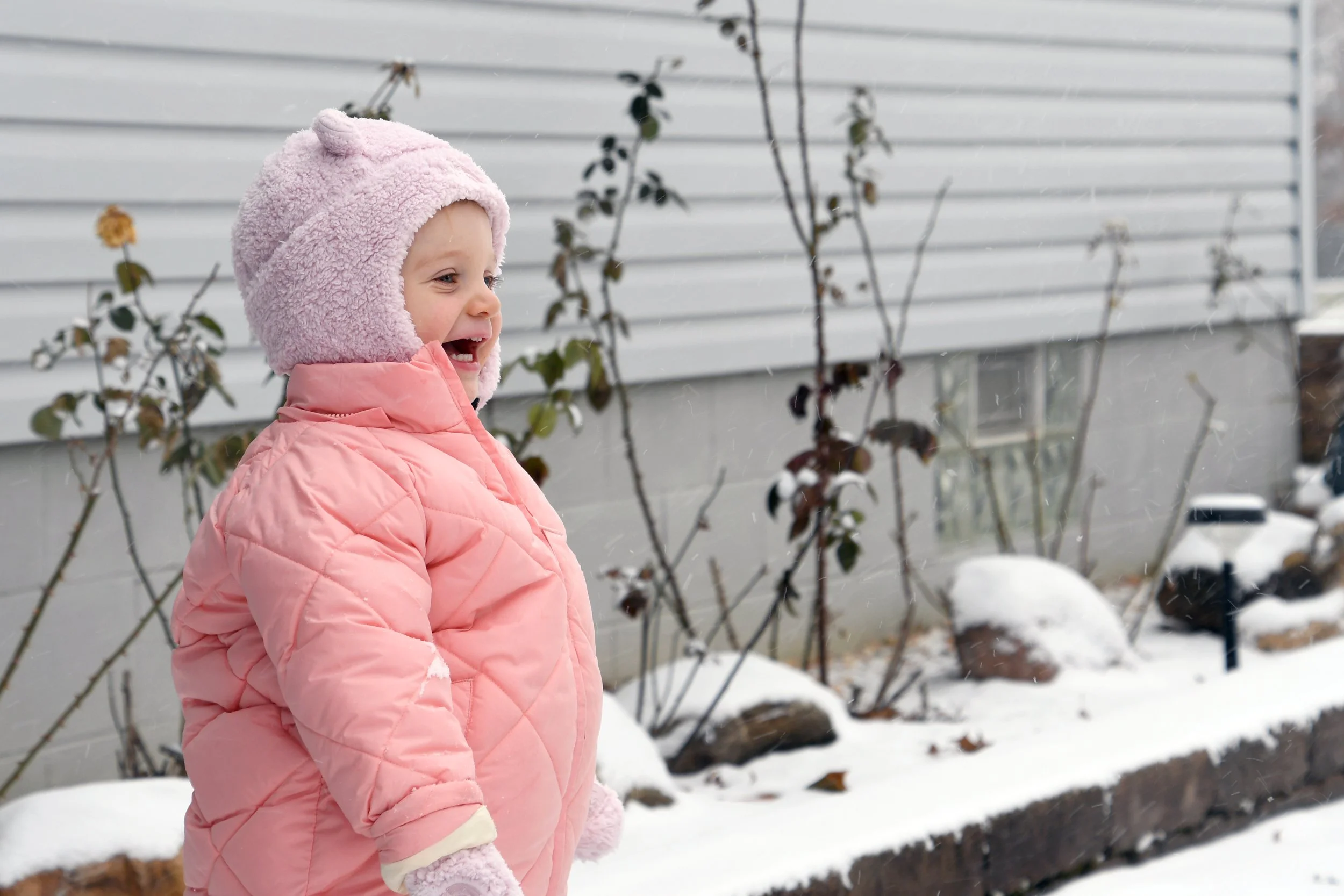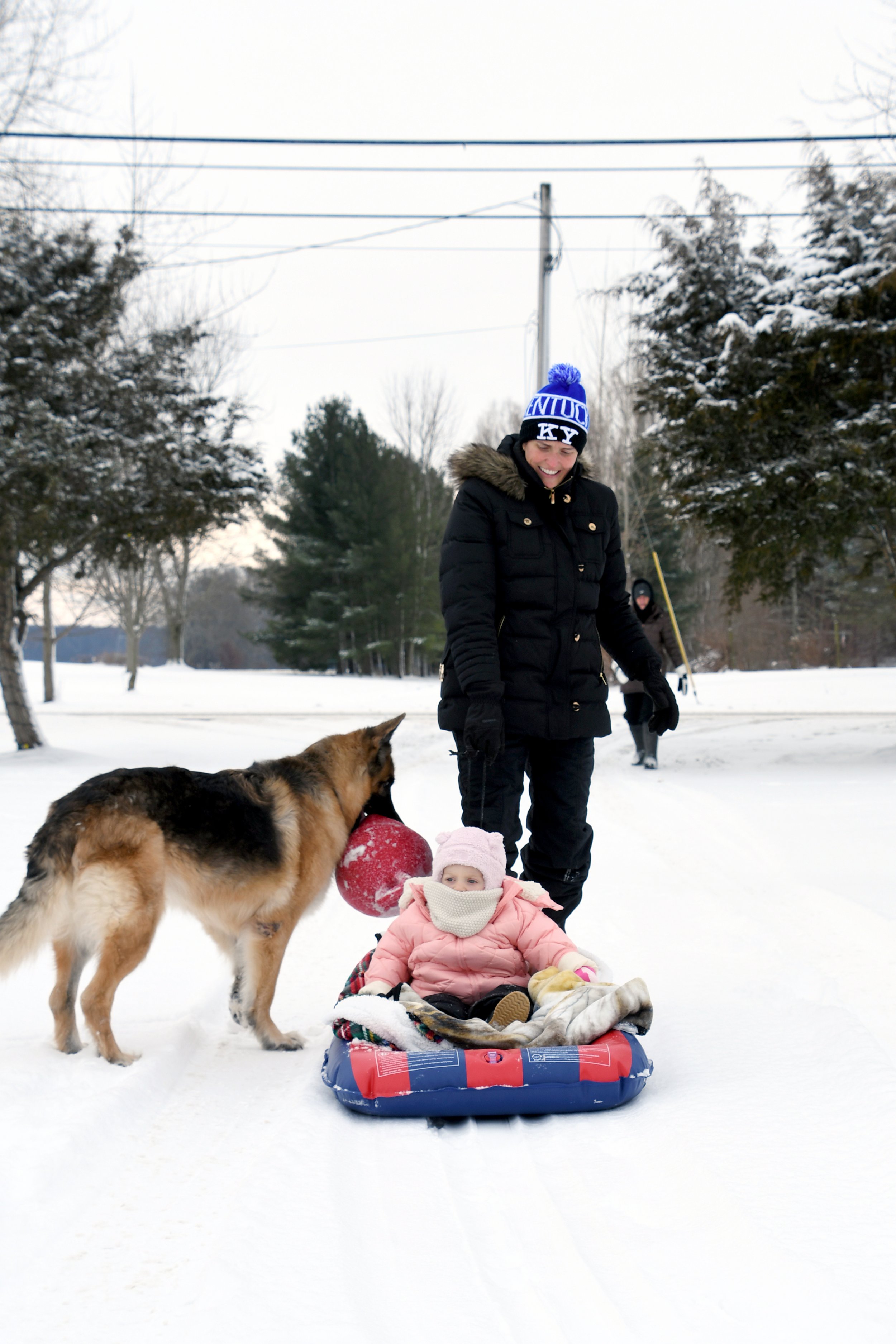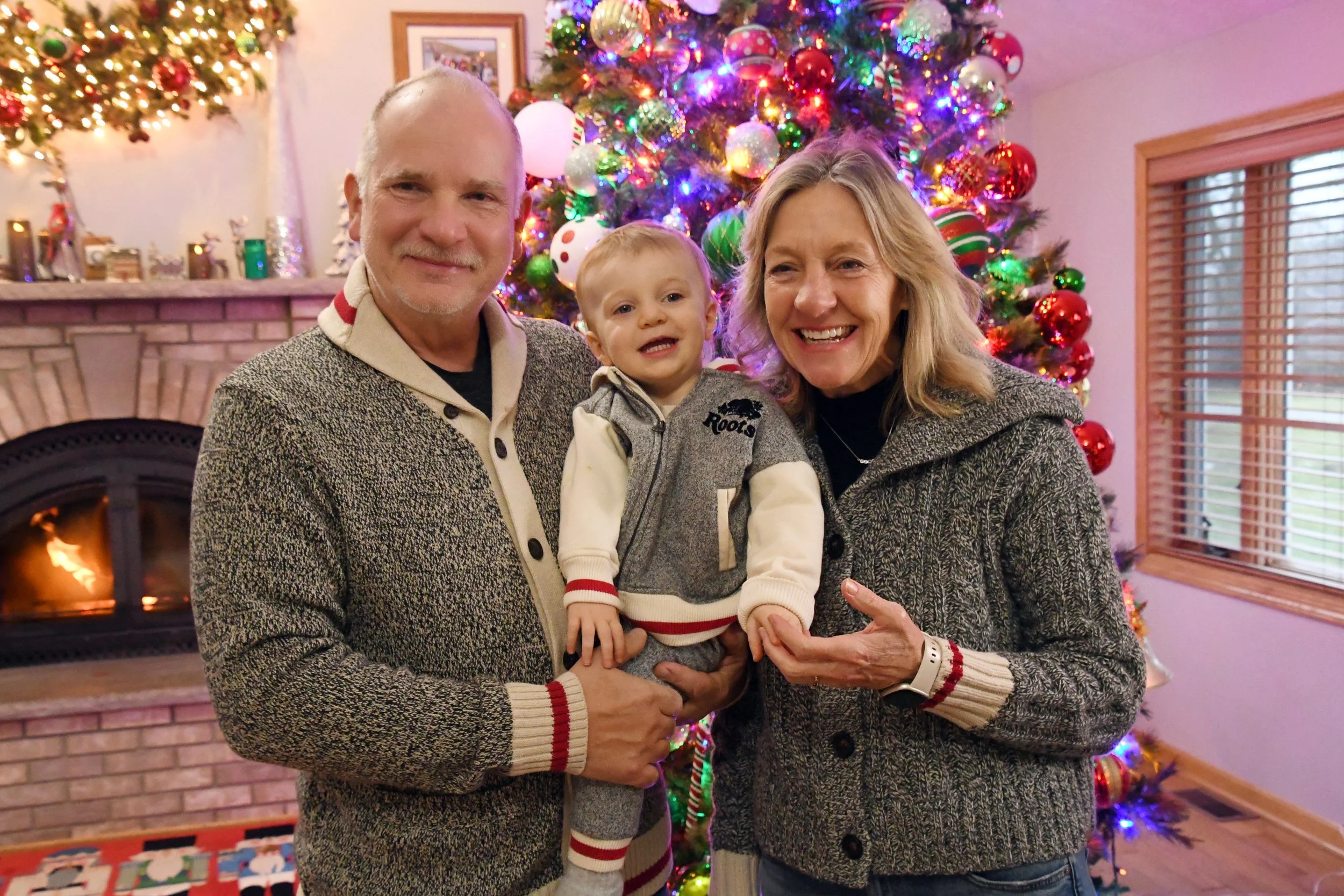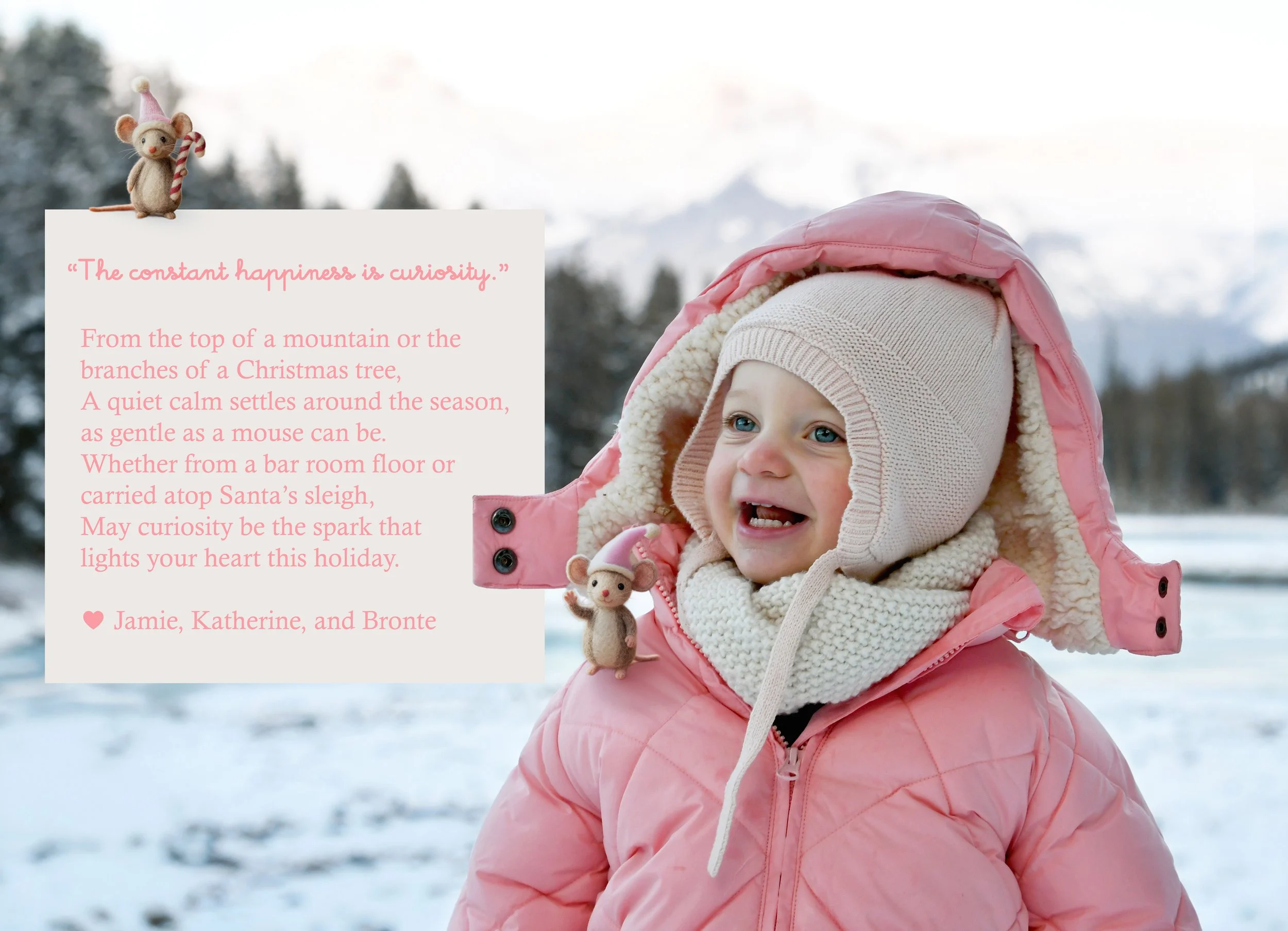 Spending time at Jamie’s house is always so special. Candles are thick and full of buttery scents, the fireplace is always on, and Hallmark reigns supreme. The kitchen is always overflowing with cookies, and there is Christmas music along with the smell of sausage rolls. The lights all around the property make us excited to go on evening walks, bundled up for the layer of snow that usually exists. This year Bronte loved watching Kai chase snowballs roll around looking for sticks. She took a tractor ride with Grandpa Perin, and went to see the neighbor’s cows with Grandma Jane. We successfully went sledding twice - once down a local hill with Jamie’s cousin Lilly, and it was silly to see how much air Bronte would get when her and Jamie hit a few bumps. Another time we connected the sled to the four wheeler, and zoomed around the property as the snow really began to fall.