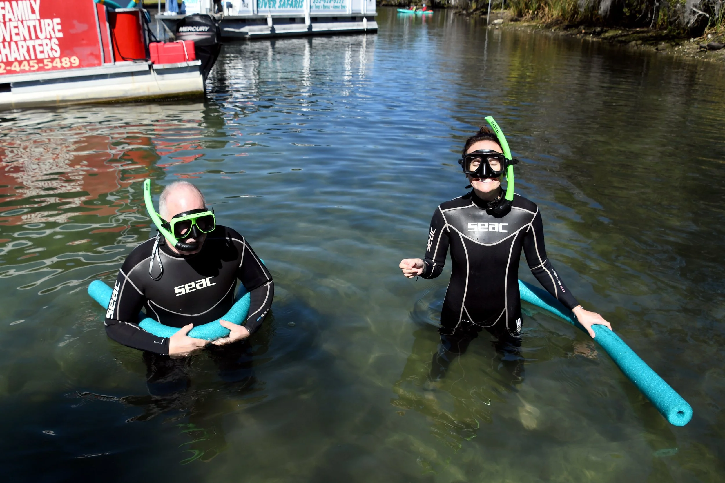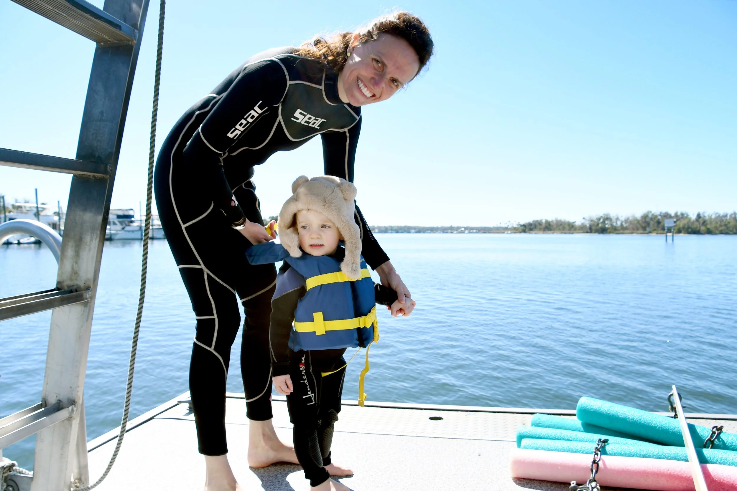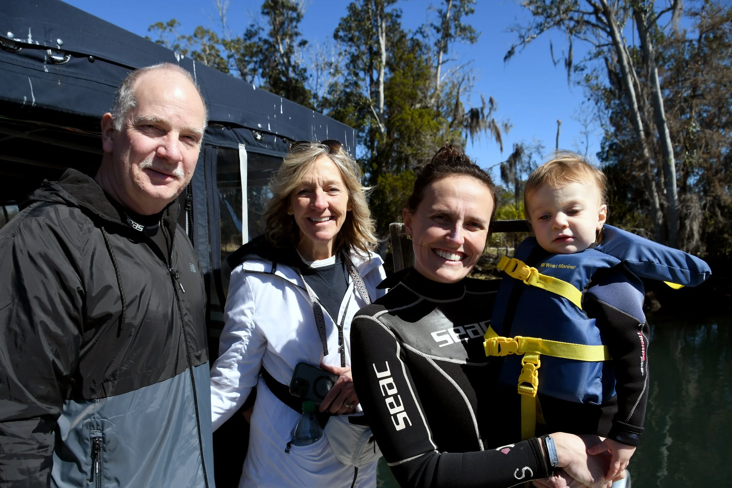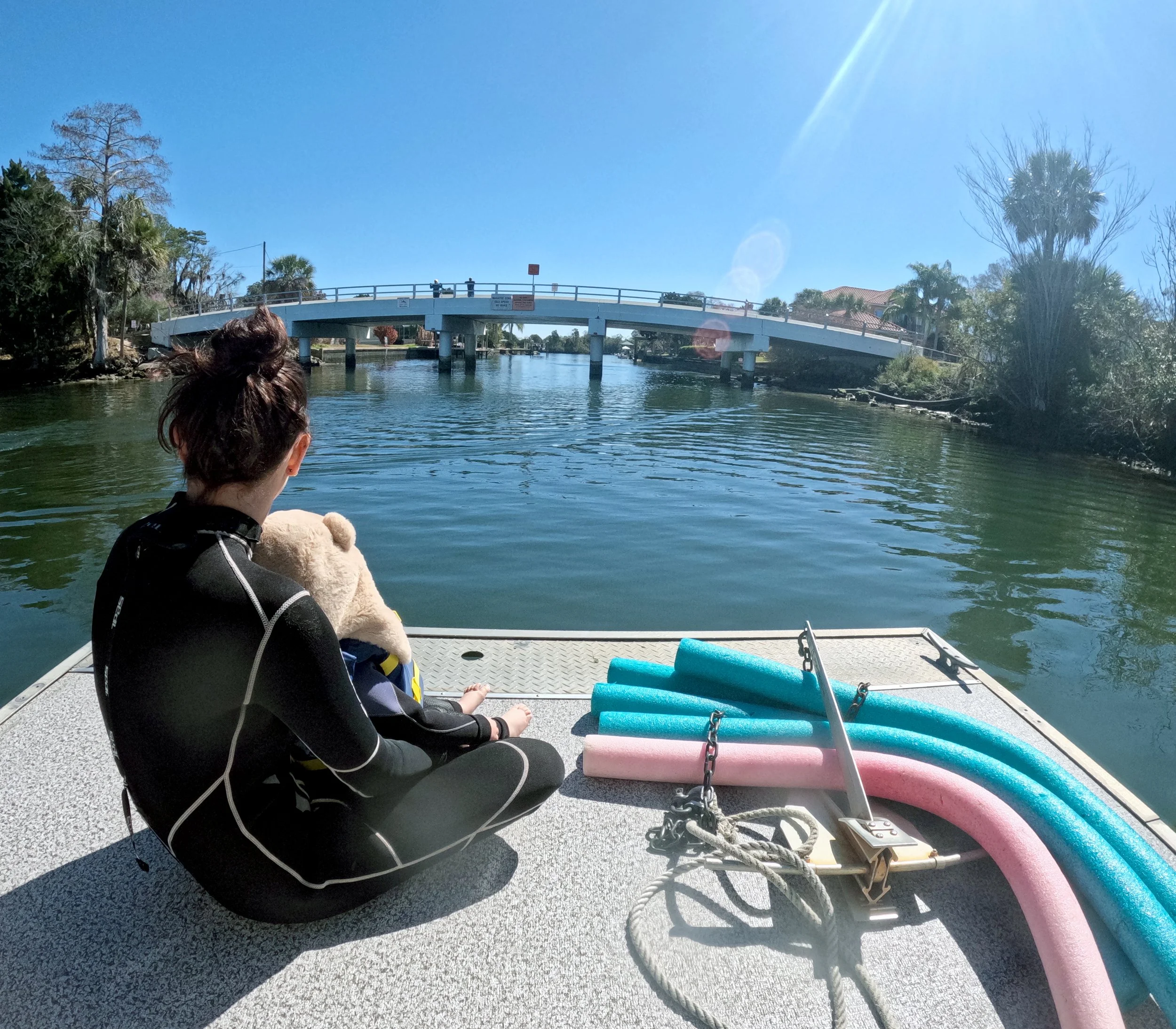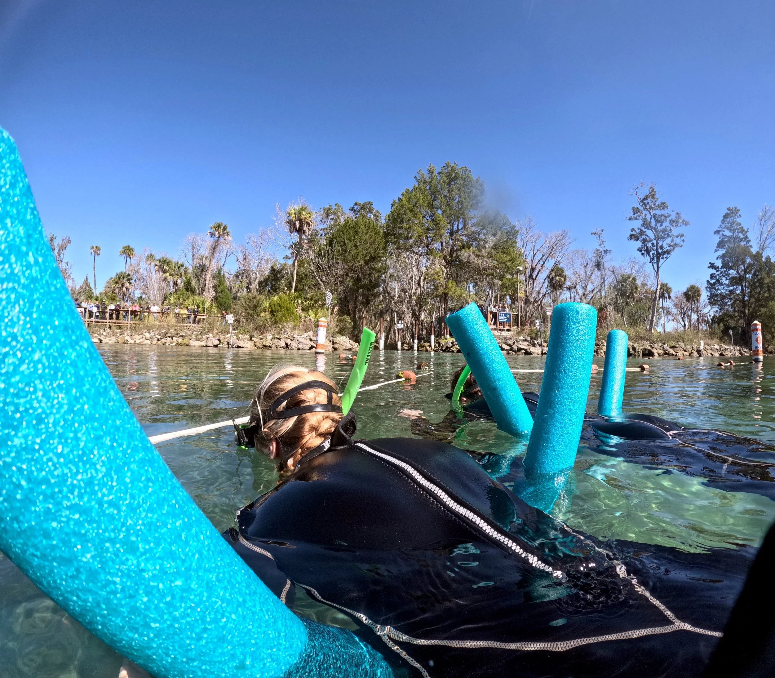 We found a tour company that allows children of any age, and they even had a wetsuit for a 2yr old. While the water was cold and brisk, we wanted Bronte to come into the water for a chance to swim with them. She loved seeing them with her grandma on the boat, and by the time she got into the water, she knew what to look for. I eased her into the water, and she didn’t seem to flinch with the coolness of it. “No, warm water,” was her response. I put a couple foam noodles under her, and glided her to the nearby springs where the manatees were nestled around. She kicked her feet, and paddled along, singing “man-a-tee” the whole way. She got to see grandpa and Jamie in the water, and while she did not look beneath the surface, manatees swam beneath her. It was an incredible experience, one that we were sorry to leave. However leaving became necessary, and once back on the boat, we were all in violent shivers that spilled our hot chocolate from our hands. Bronte, of course, remained un-phased as the rest of us tried to regain warmth in our bodies.
