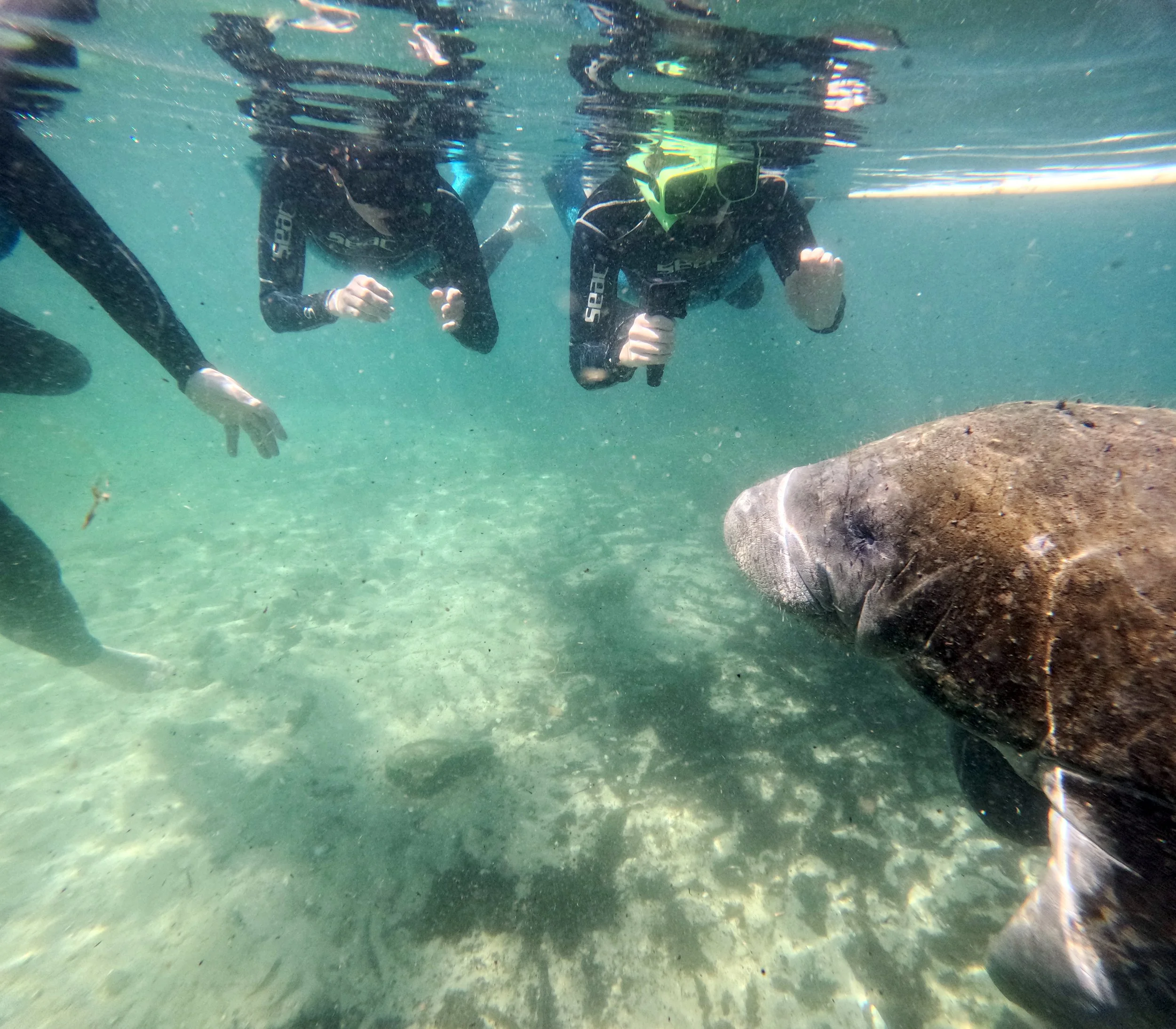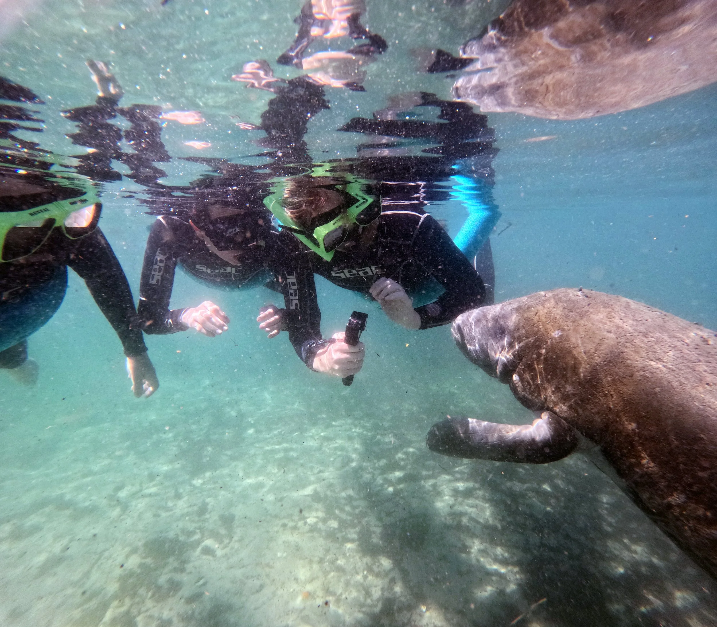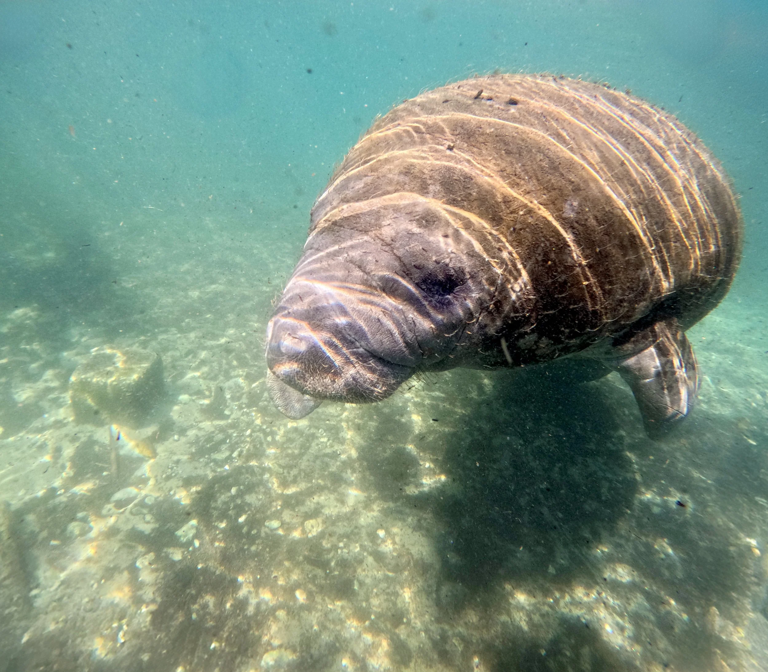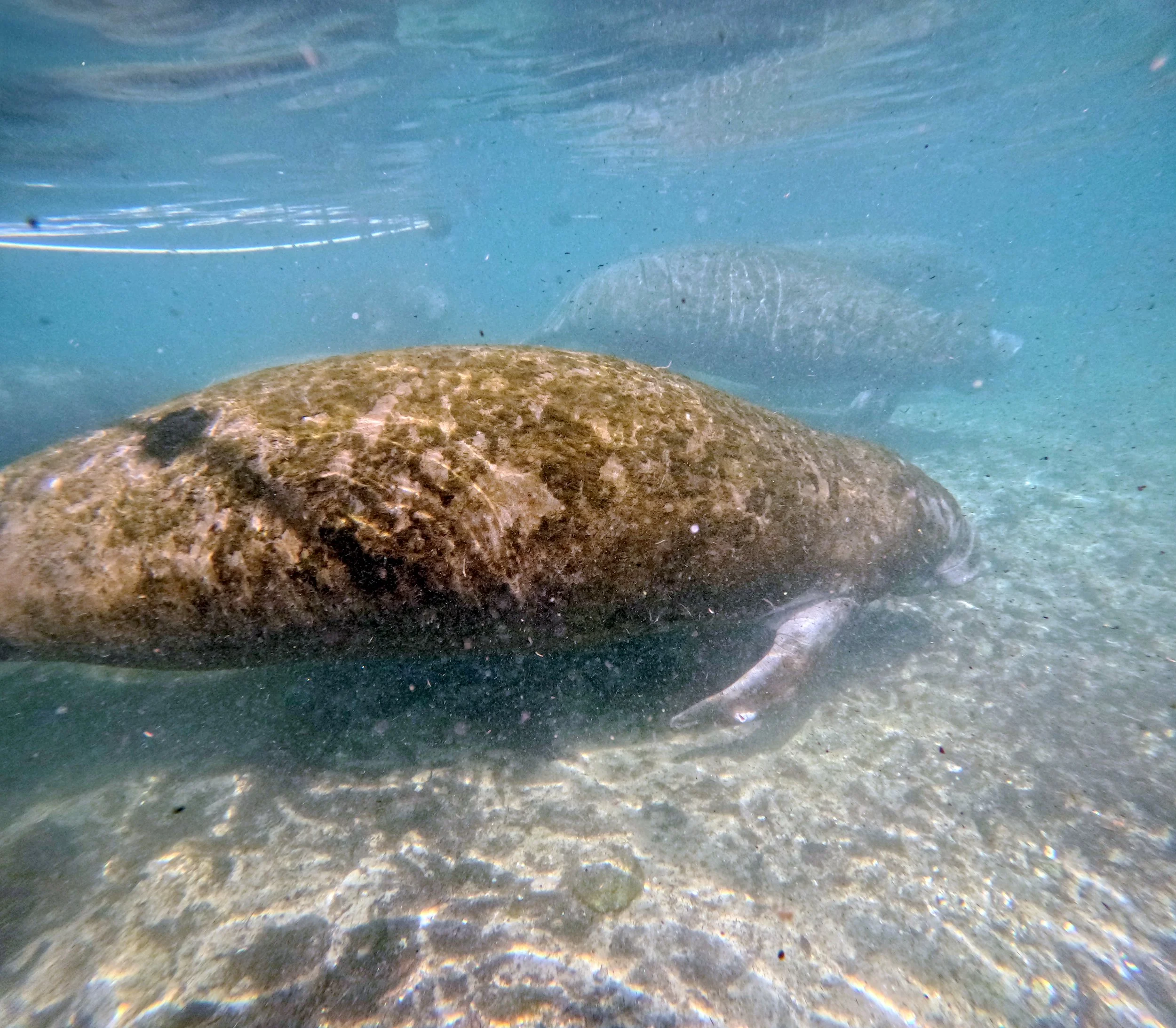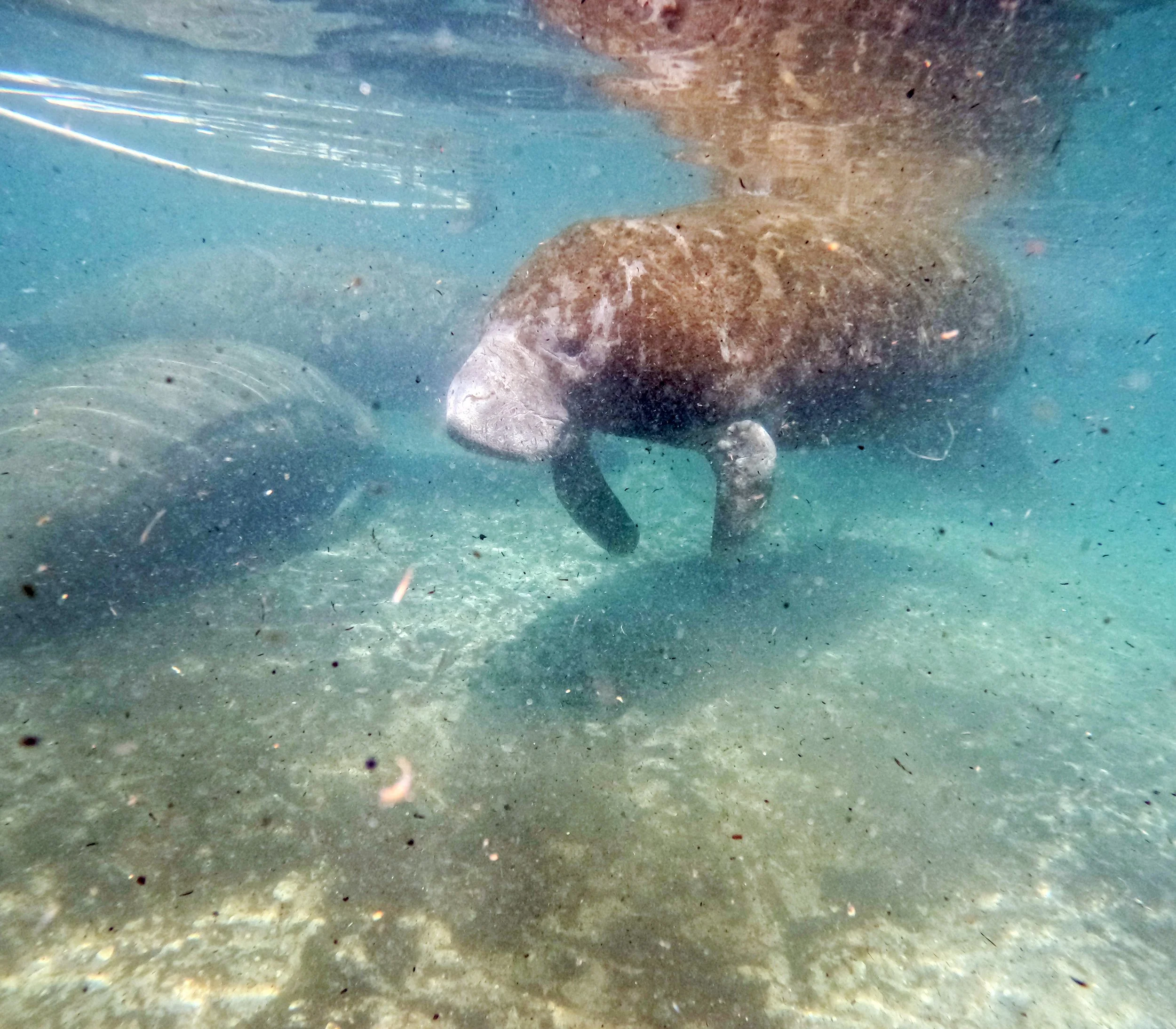 While Jamie and I have swam with manatees a multitude of times, each time is special in its own way. These beautiful mammals always bring calm to our hearts, and the way they move, come up to you for a nudge or nibble on your hand, and the sweet squeaky sounds the baby make, tunes you in to the beauty that is Life. It was Jim’s first time swimming with manatees, and Jane got to see them swim beside the boat.