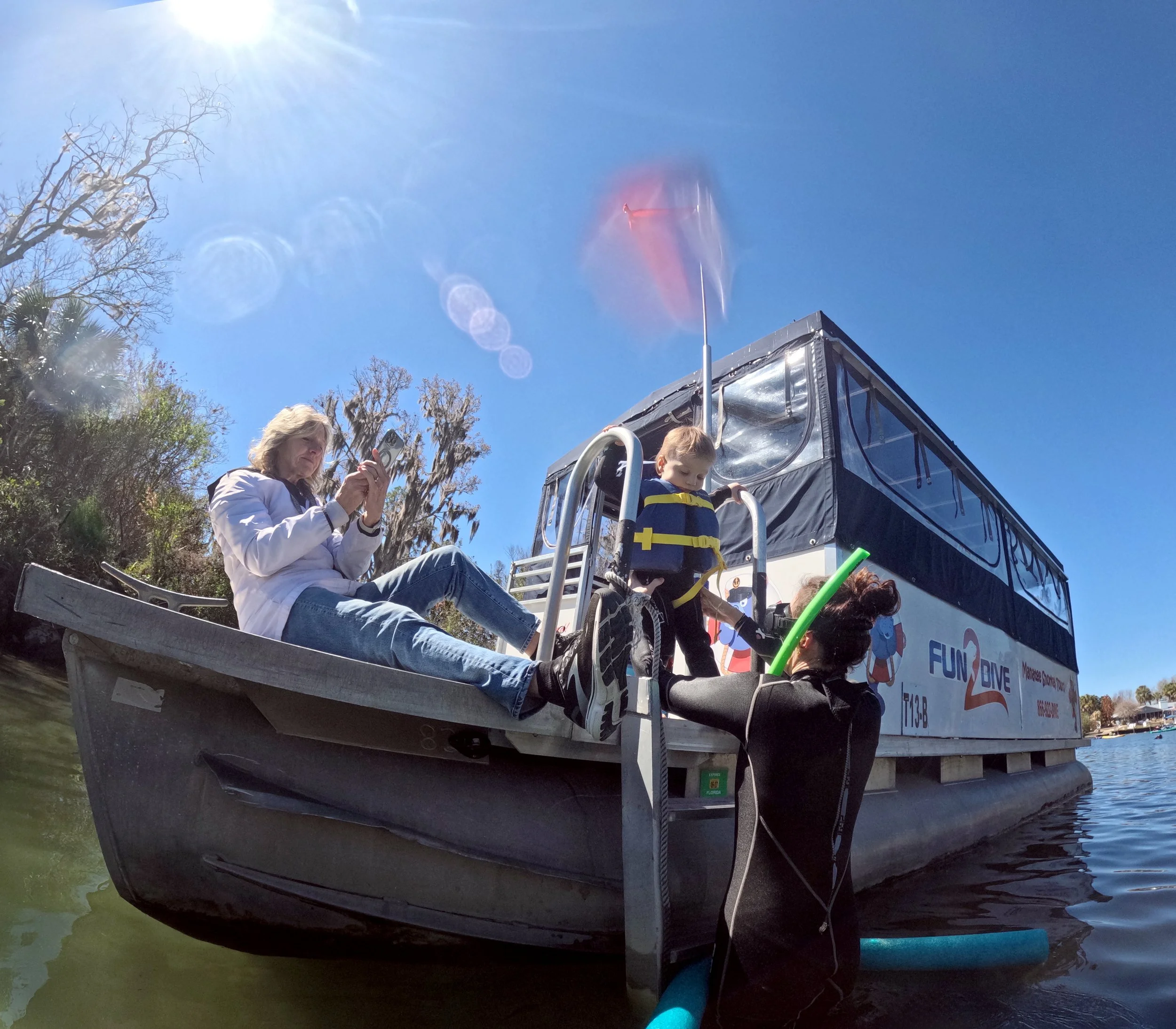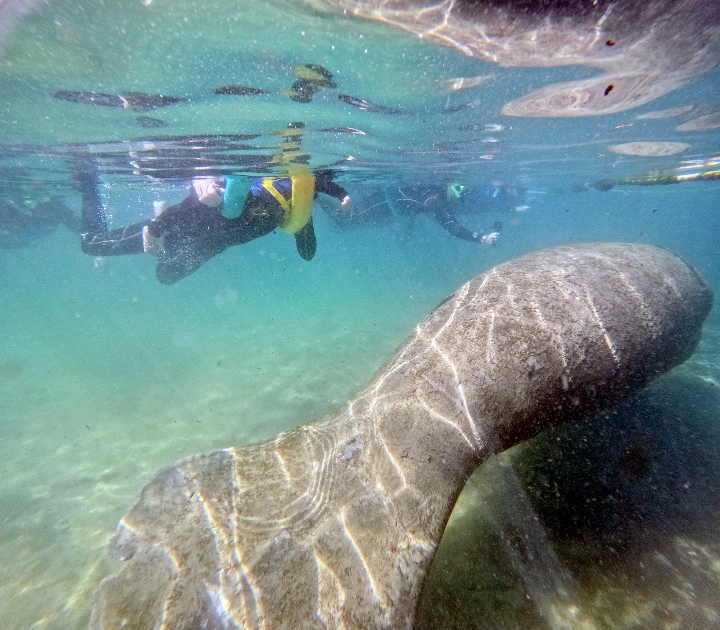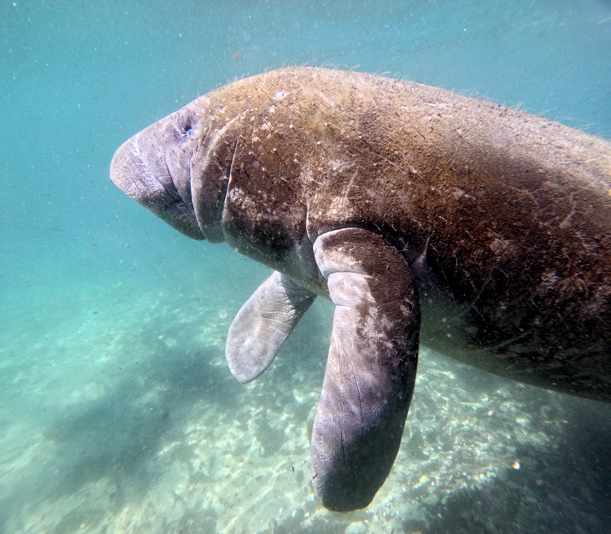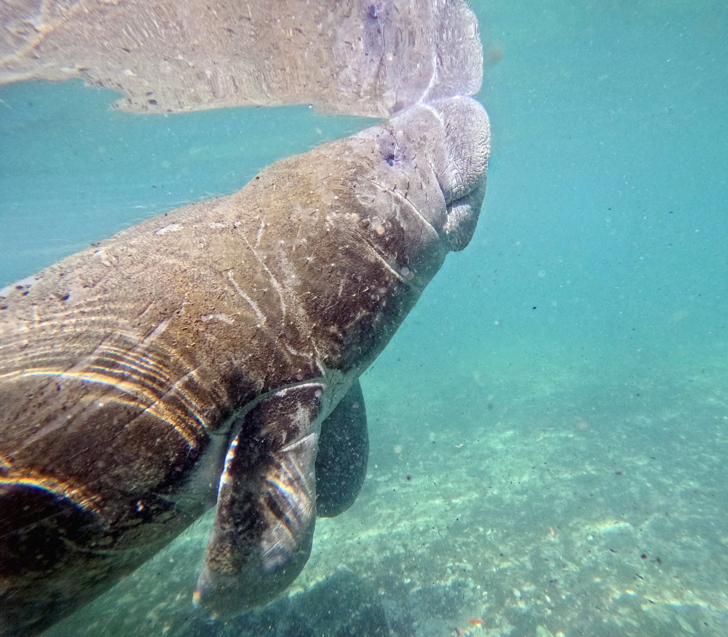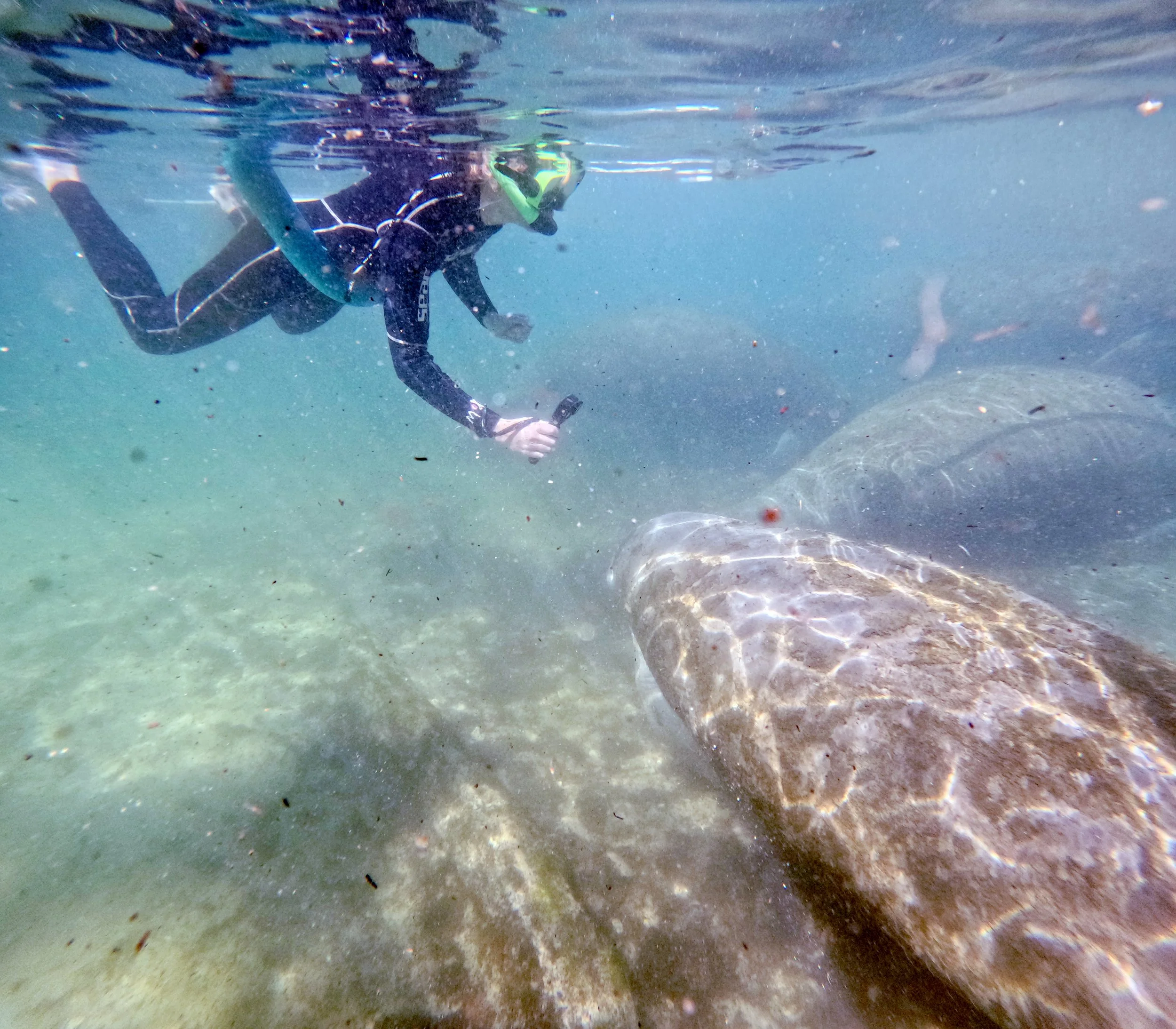 While Jamie and I have swam with manatees a multitude of times, each time is special in its own way. These beautiful mammals always bring calm to our hearts, and the way they move, come up to you for a nudge or nibble on your hand, and the sweet squeaky sounds the baby make, tunes you in to the beauty that is Life. It was Jim’s first time swimming with manatees, and Jane got to see them swim beside the boat.