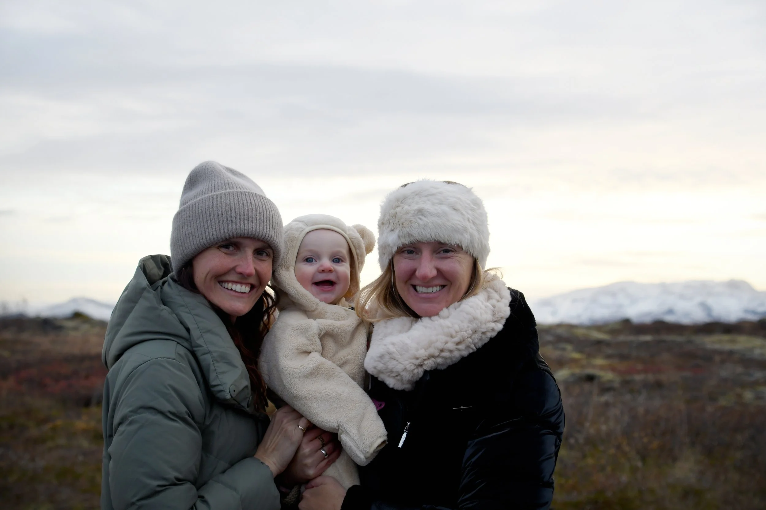 Our main mission was to see the Northern Lights, and while those did not show for us, we took home the memories of the land and water, the fire and ice - and the image of Bronte going crazy for the horses. We stopped roadside to pet some horses that came up to us, and Bronte did a giggle that seized up her whole body, so much so she lost her chin to her neck. She was just so happy! Roadside stops are so fun in Iceland, not just for the accessible waterfalls everywhere, the glacier photoshoots, but to say hello to the grazing sheep, the roaming horses, and the tiny huts build into the mountains.