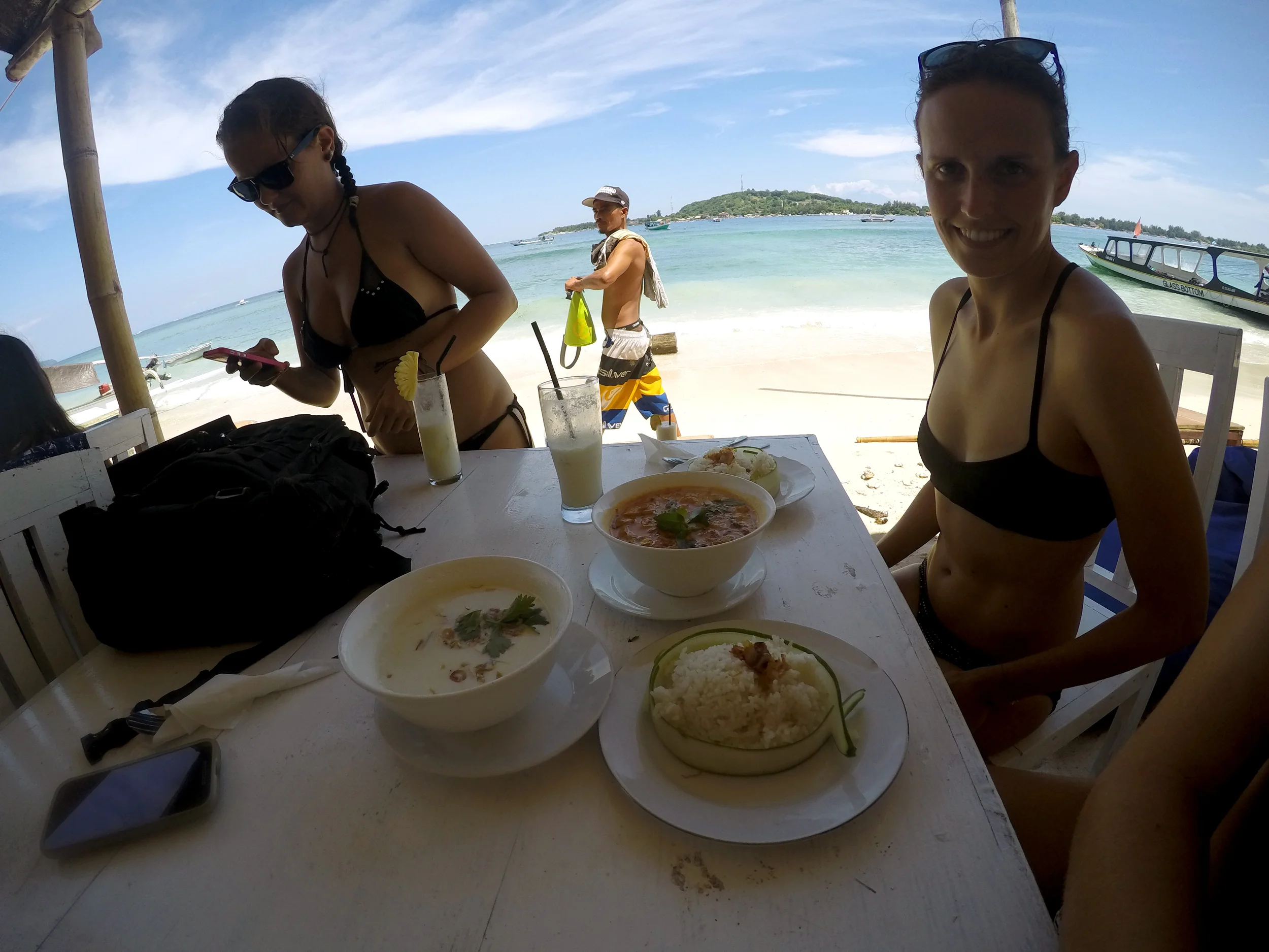 Greatest Moment: This was the most beautiful island, in Jamie’s opinion, that we have been to yet! Could it have been that our hotel overlooked the sea, viewing Rinjani Volcano in the distance? That at the beach, skirting the breaking water next to where we ate breakfast, there were enough shells to make a collector blue from exertion—provided a delightful sea turtle to swim with—or accommodate days full of reading, writing, and card playing? It was absolute relaxation. It was remote and undeveloped. You felt instantly as though time passed differently here, as if minutes were measured by the depth of high tide and hours by the clearness of the water. This was also the first place we saw sea turtles! We swam with them as they floated casually to the surface, so unaffected by our presence and electric excitement. In paradise we stayed for four nights, and here there is a oneness with nature that no beach has yet to offer!
