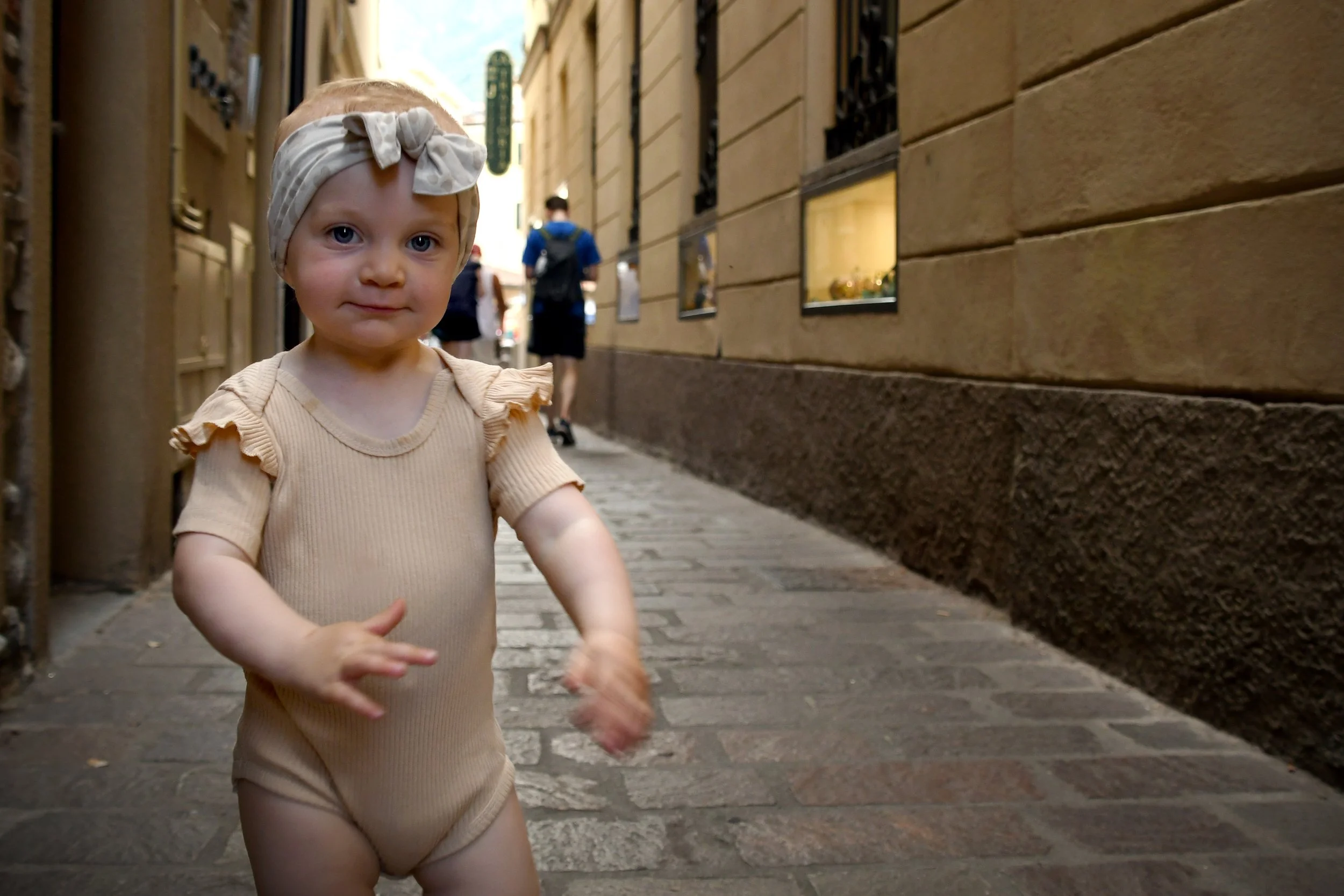 In the town of Bellagio, Bronte decided to sleep. As we wanted to shop, and the town itself is winding brick pathways, we left her with Tim. Luckily he got to enjoy a sip of his beer and a bite of his sandwich before she woke up, but the true magic Bronte gave him was peeing on his leg and giving him a scavenger hunt to find poop that rolled out of her diaper in beautiful, Italian Piazzas. While we promised him she would sleep the whole time, he got to babysit instead.