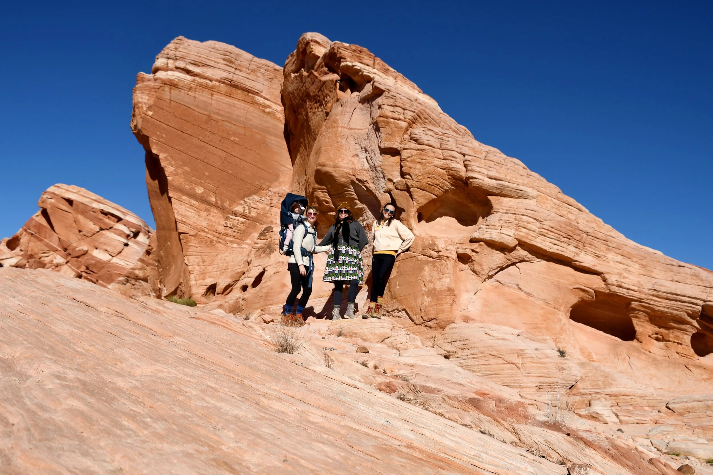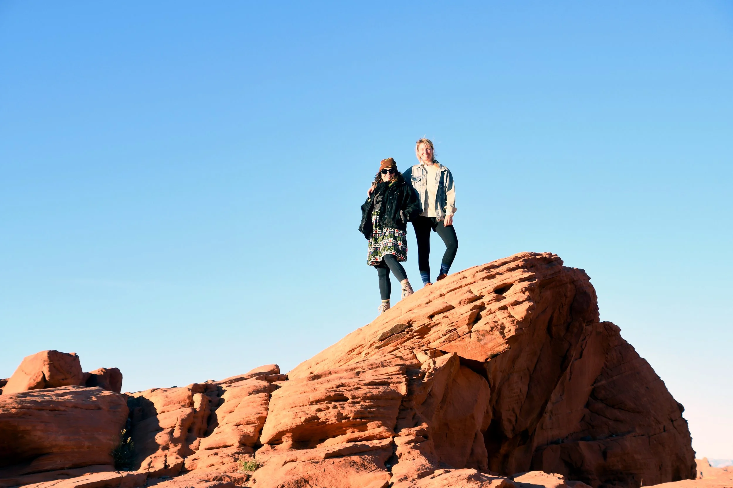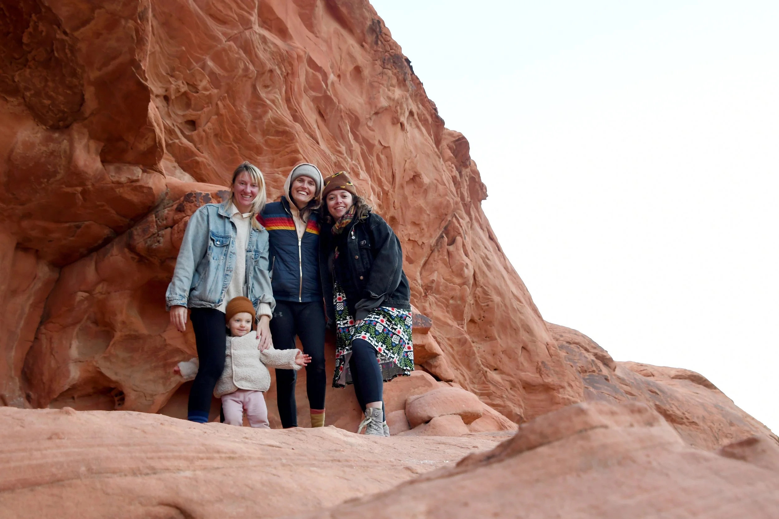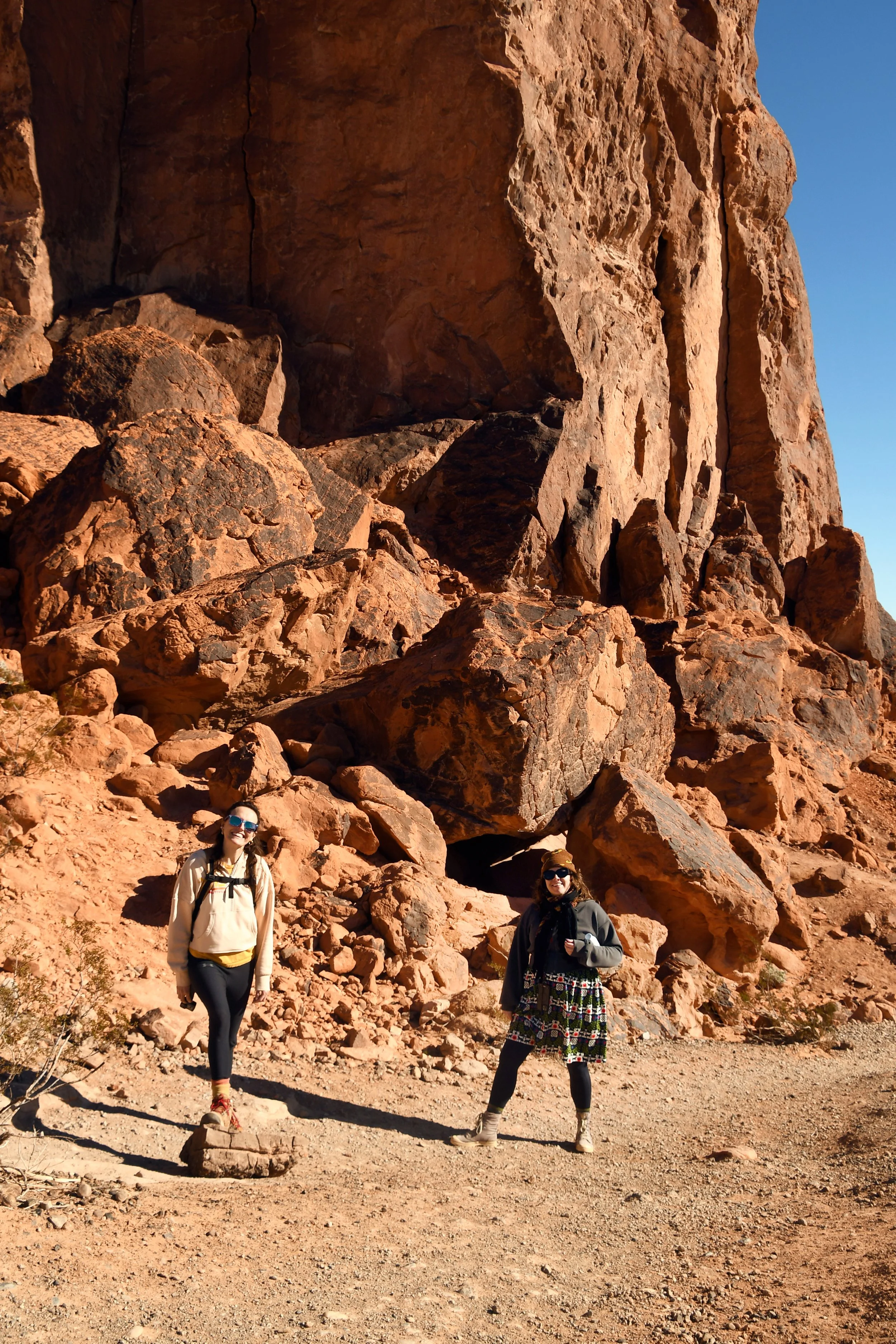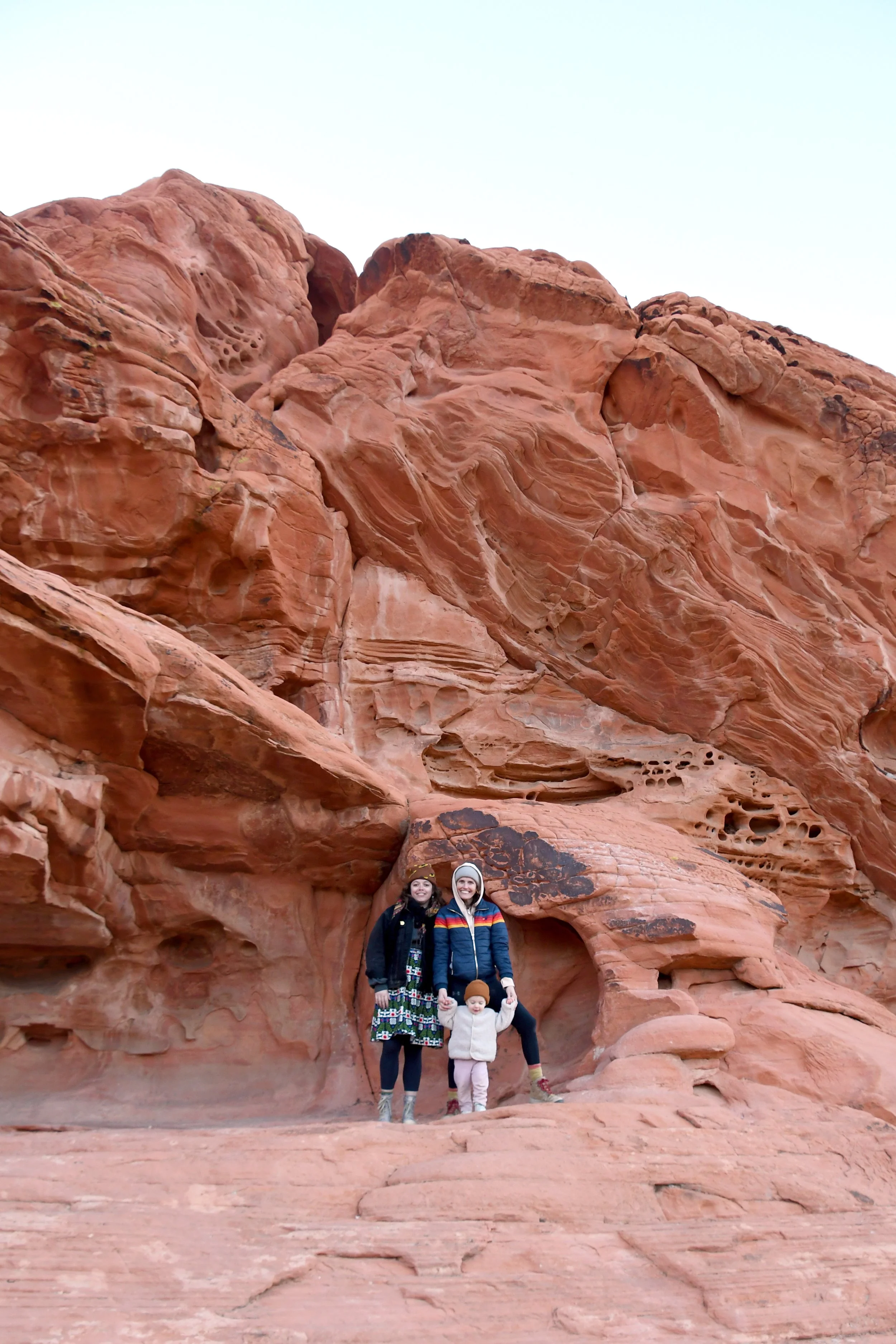 Every January, Megyn comes to California. This year we celebrated her stay with a short visit to The Valley of Fire in the Mojave Desert, and she got another taste of the wild west that lives on repeat in her dreams. We spent two nights at a hotel just by the park entrance, and the mornings drove through the red rocks and winding roads. We stopped at fire waves, pink canyons, and sought out petroglyphs. It was a small park, and we enjoyed the short trails and the many nooks to crawl into and the large rocks to climb upon.