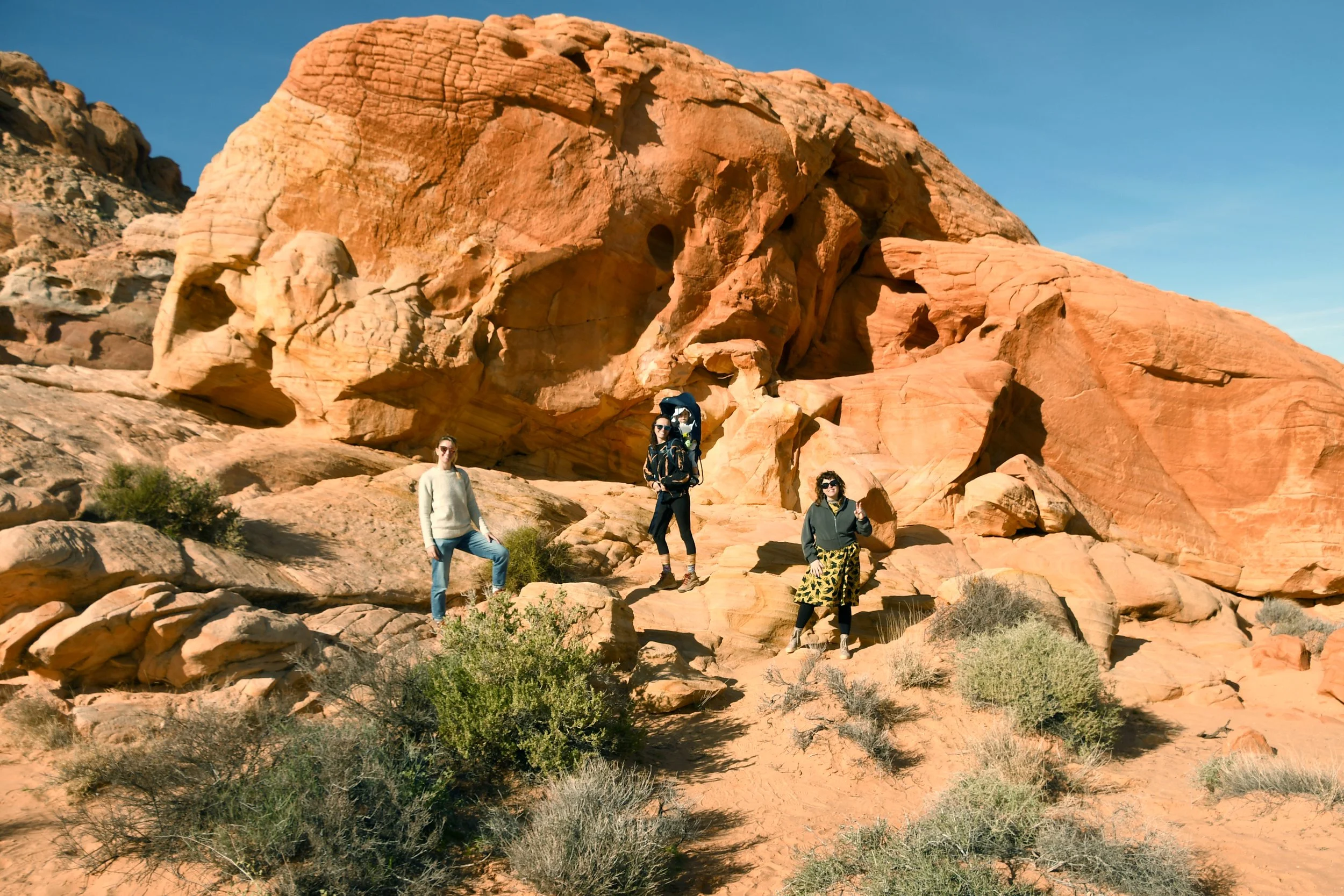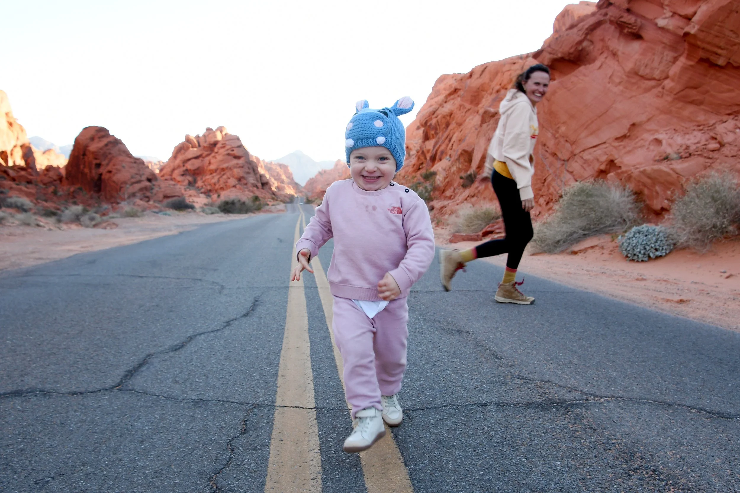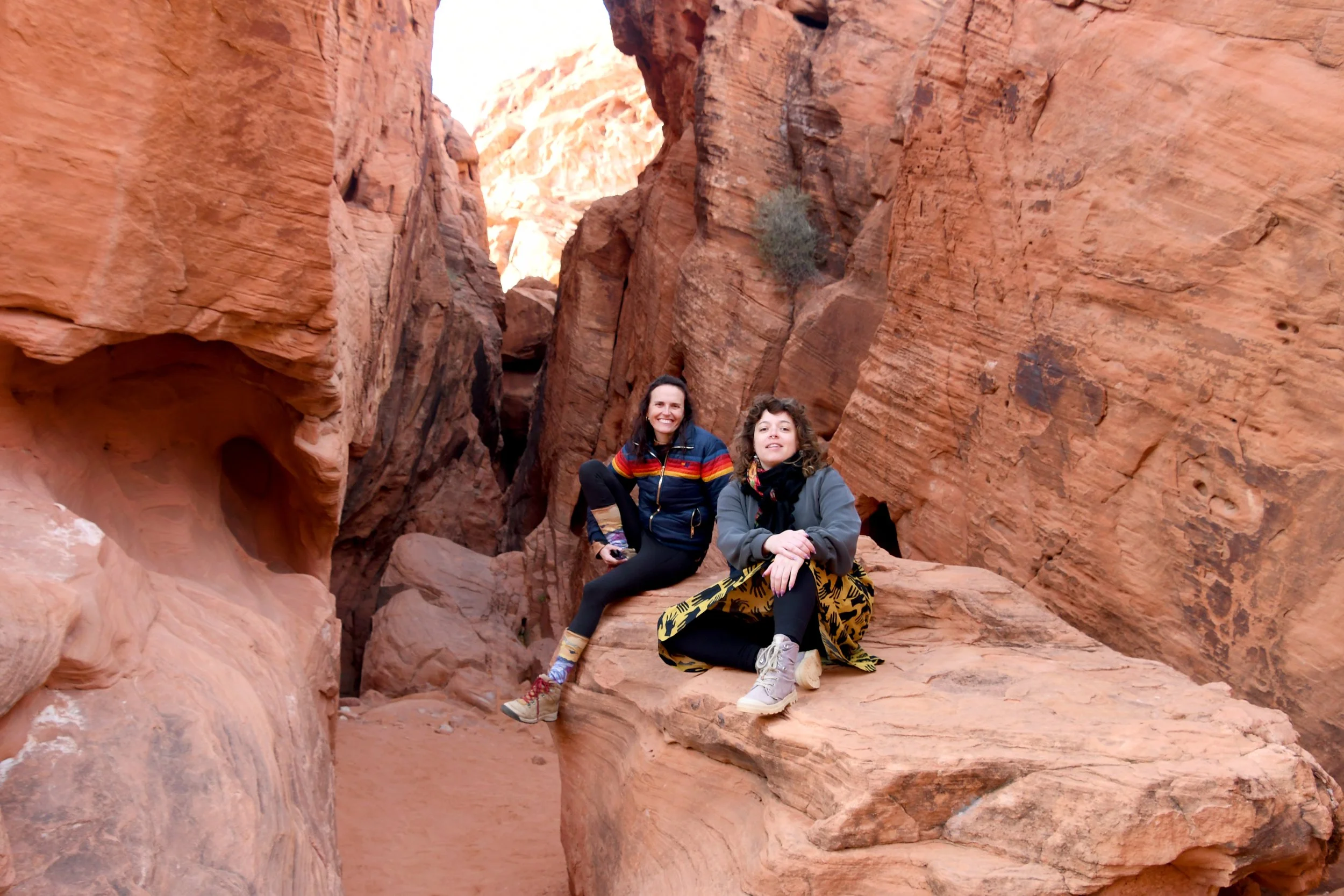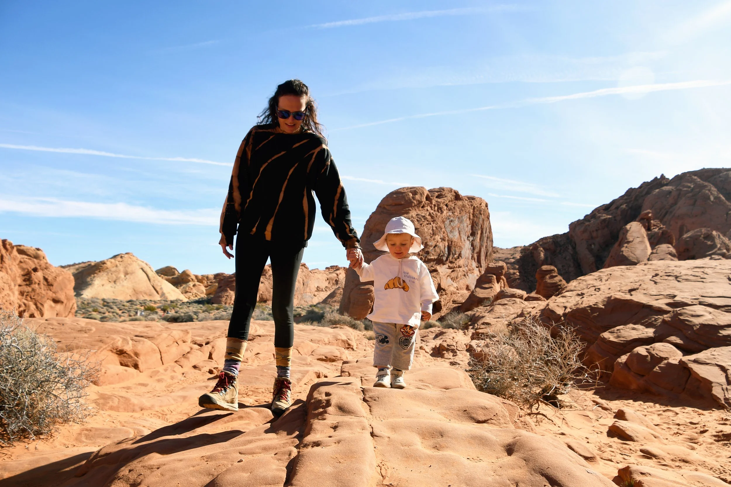 Every January, Megyn comes to California. This year we celebrated her stay with a short visit to The Valley of Fire in the Mojave Desert, and she got another taste of the wild west that lives on repeat in her dreams. We spent two nights at a hotel just by the park entrance, and the mornings drove through the red rocks and winding roads. We stopped at fire waves, pink canyons, and sought out petroglyphs. It was a small park, and we enjoyed the short trails and the many nooks to crawl into and the large rocks to climb upon.