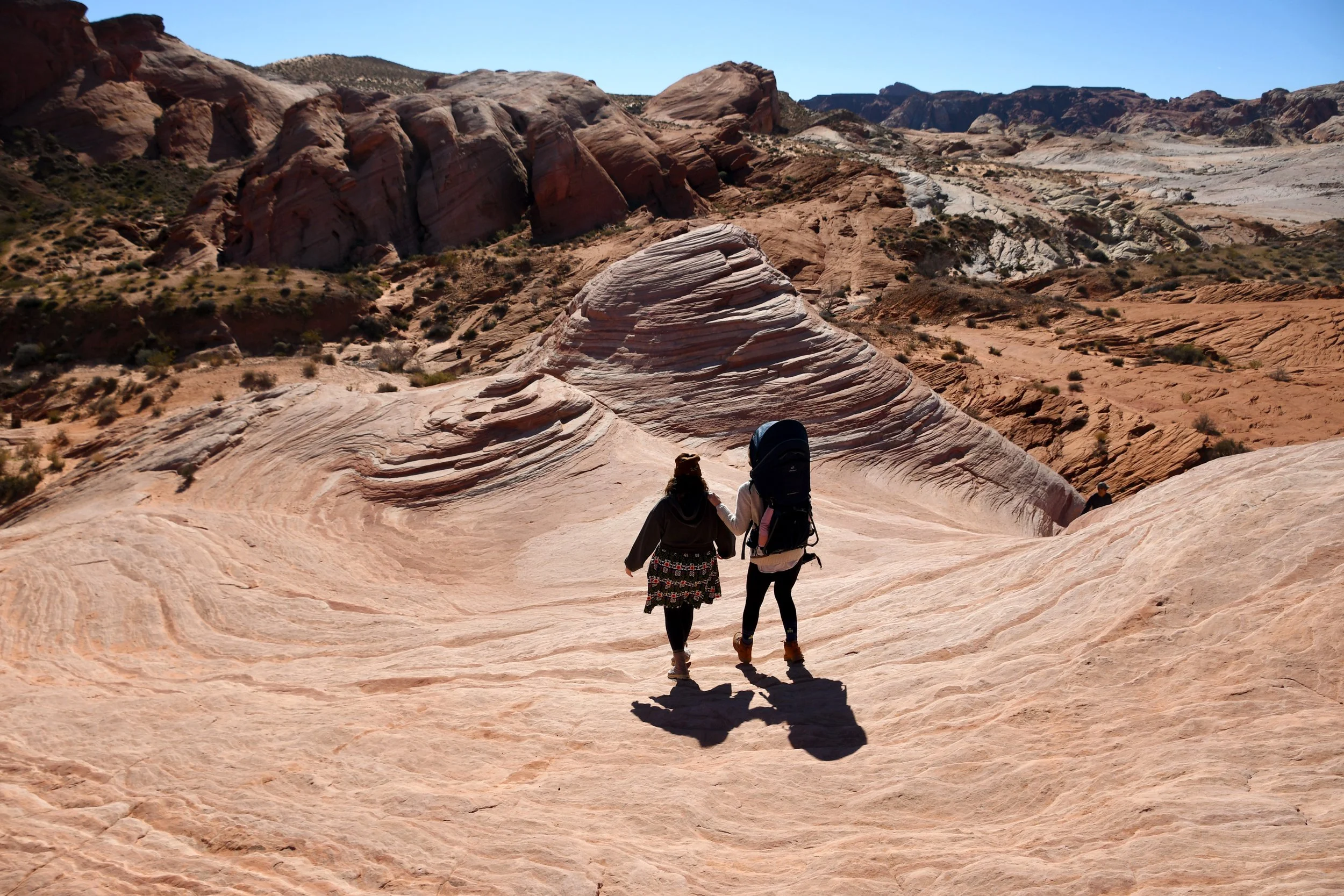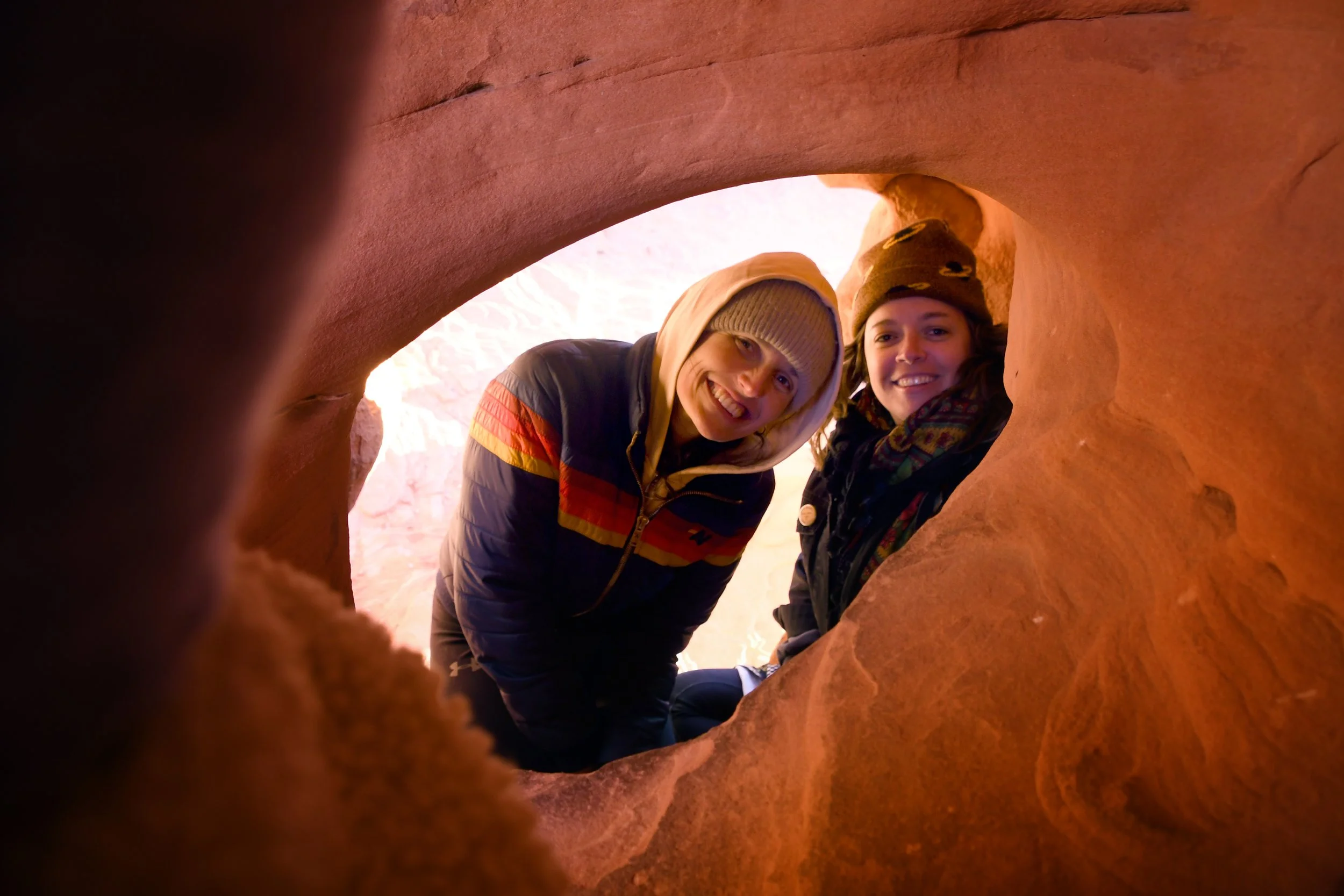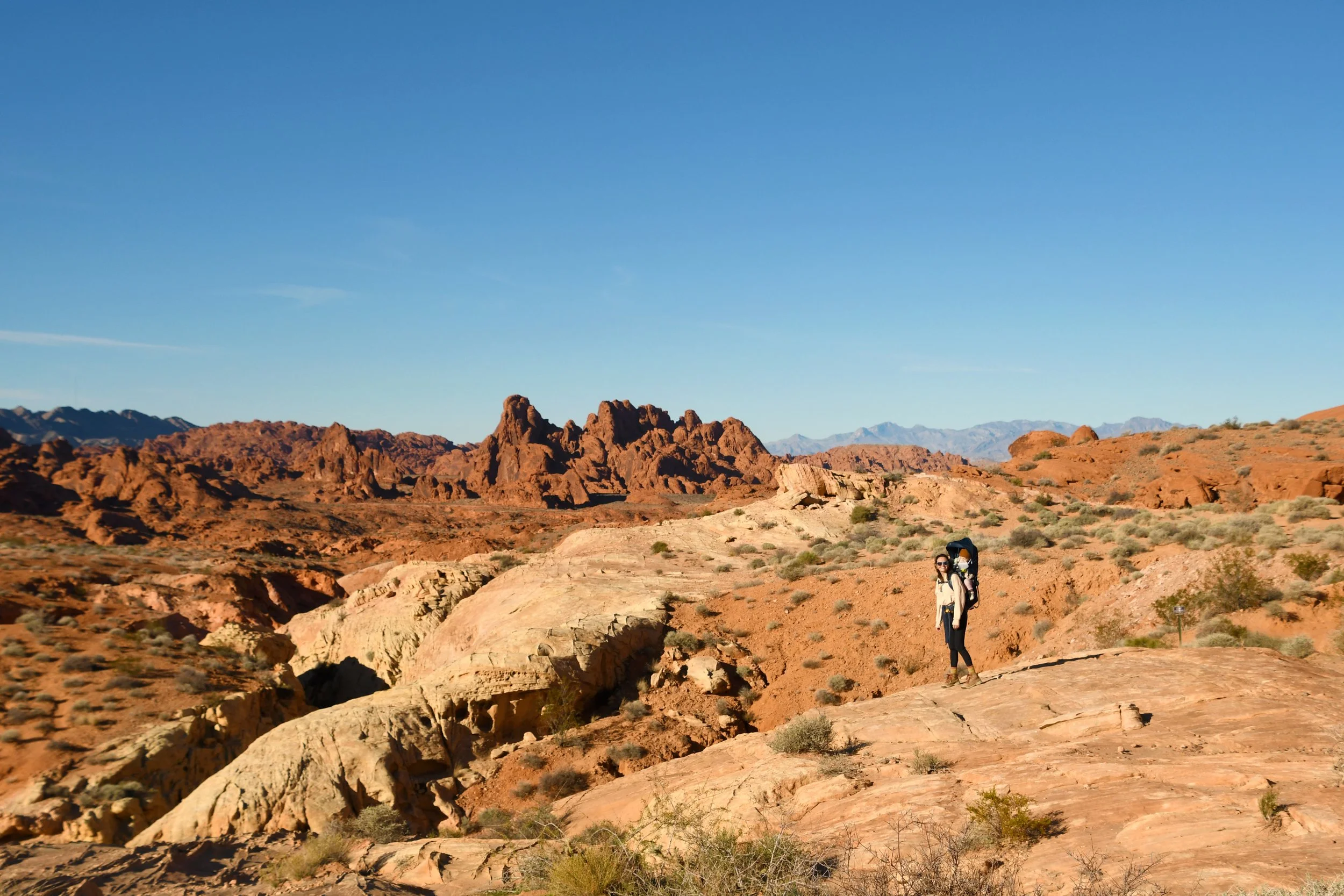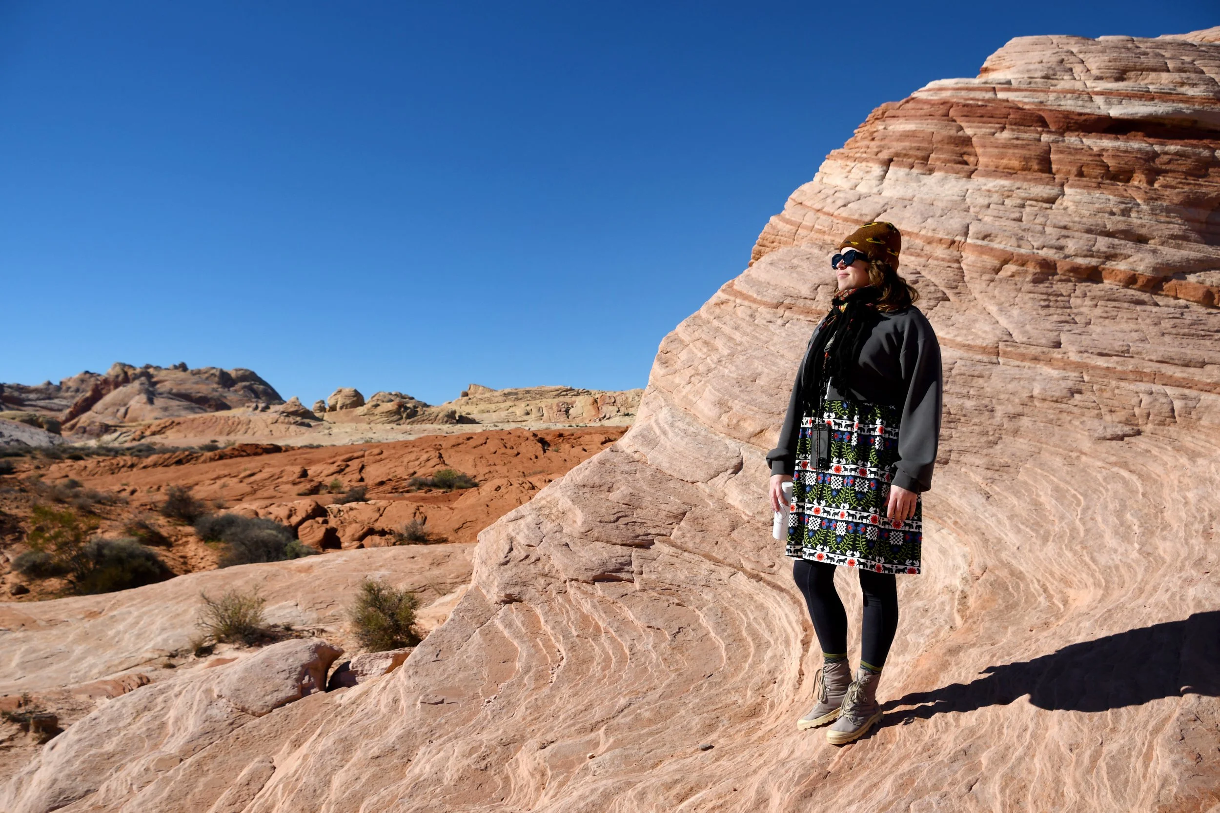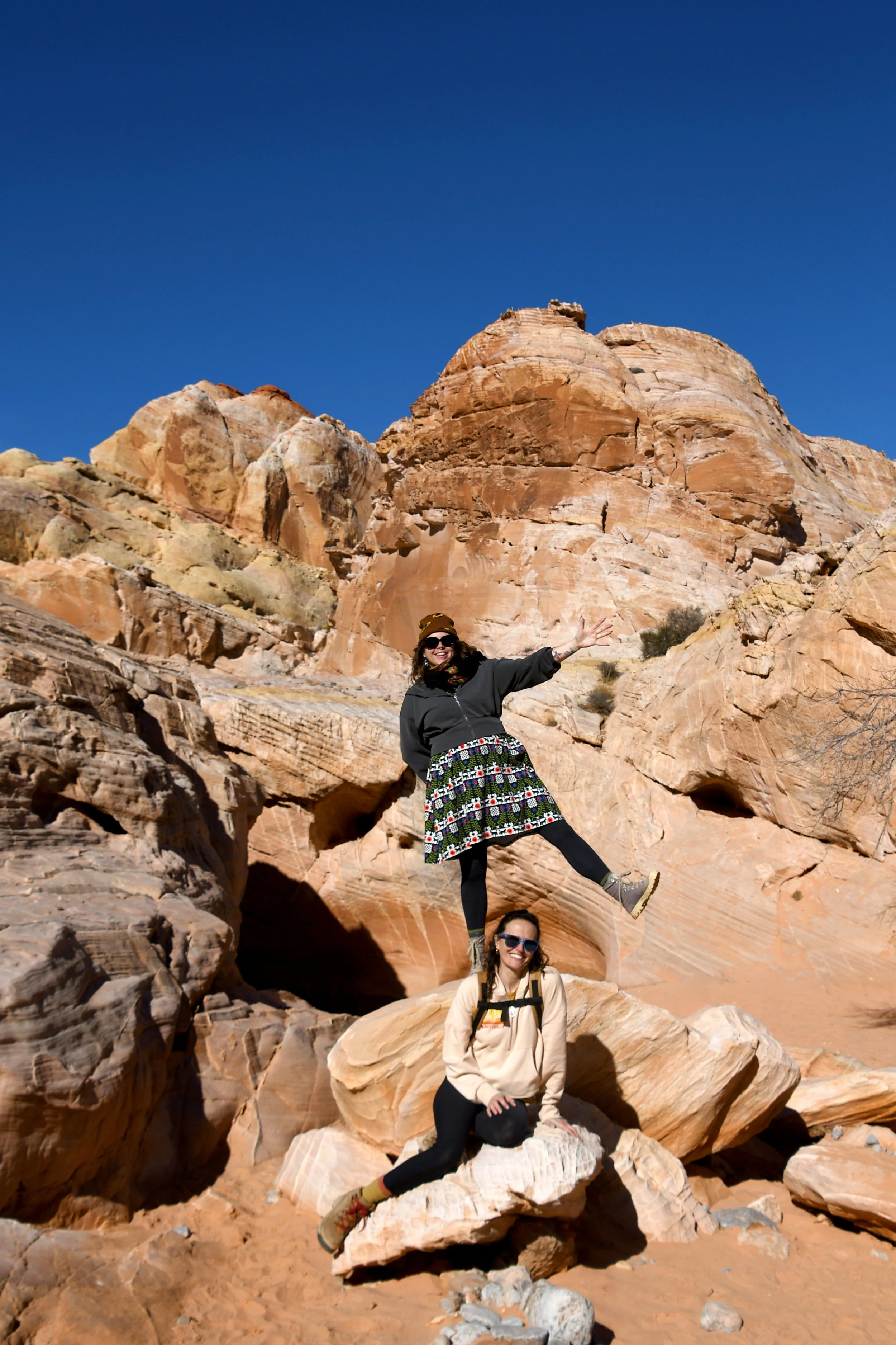 Every January, Megyn comes to California. This year we celebrated her stay with a short visit to The Valley of Fire in the Mojave Desert, and she got another taste of the wild west that lives on repeat in her dreams. We spent two nights at a hotel just by the park entrance, and the mornings drove through the red rocks and winding roads. We stopped at fire waves, pink canyons, and sought out petroglyphs. It was a small park, and we enjoyed the short trails and the many nooks to crawl into and the large rocks to climb upon.