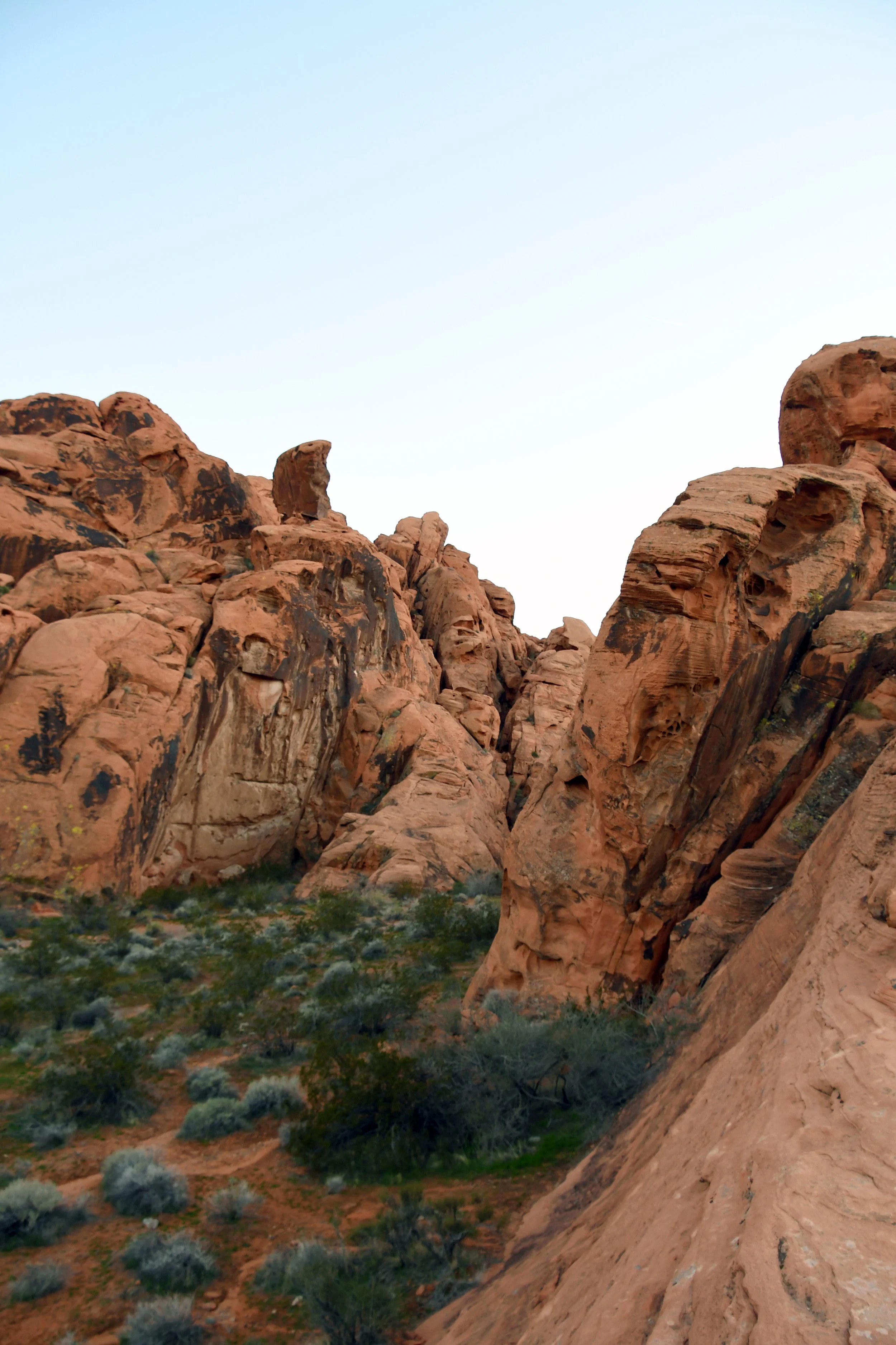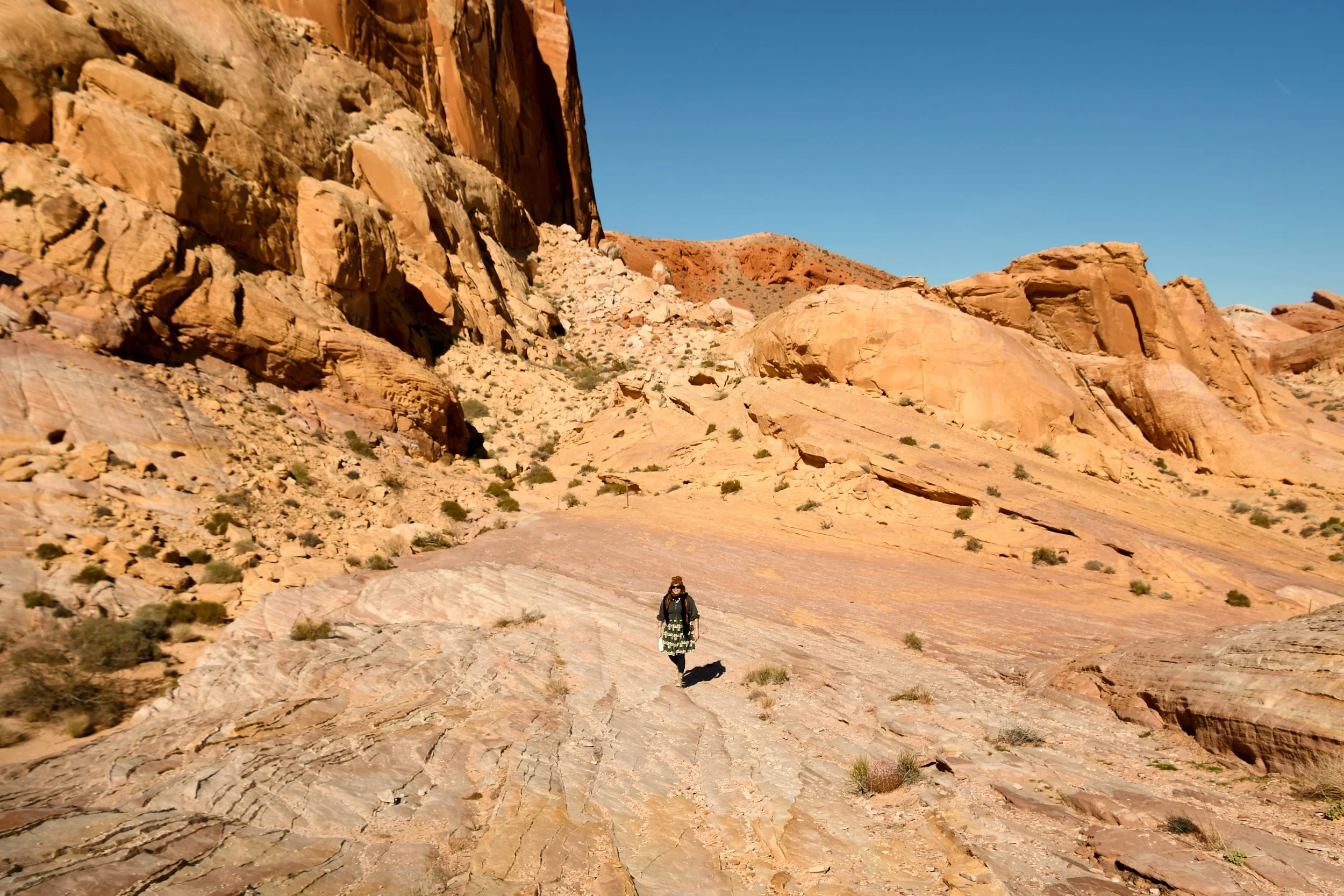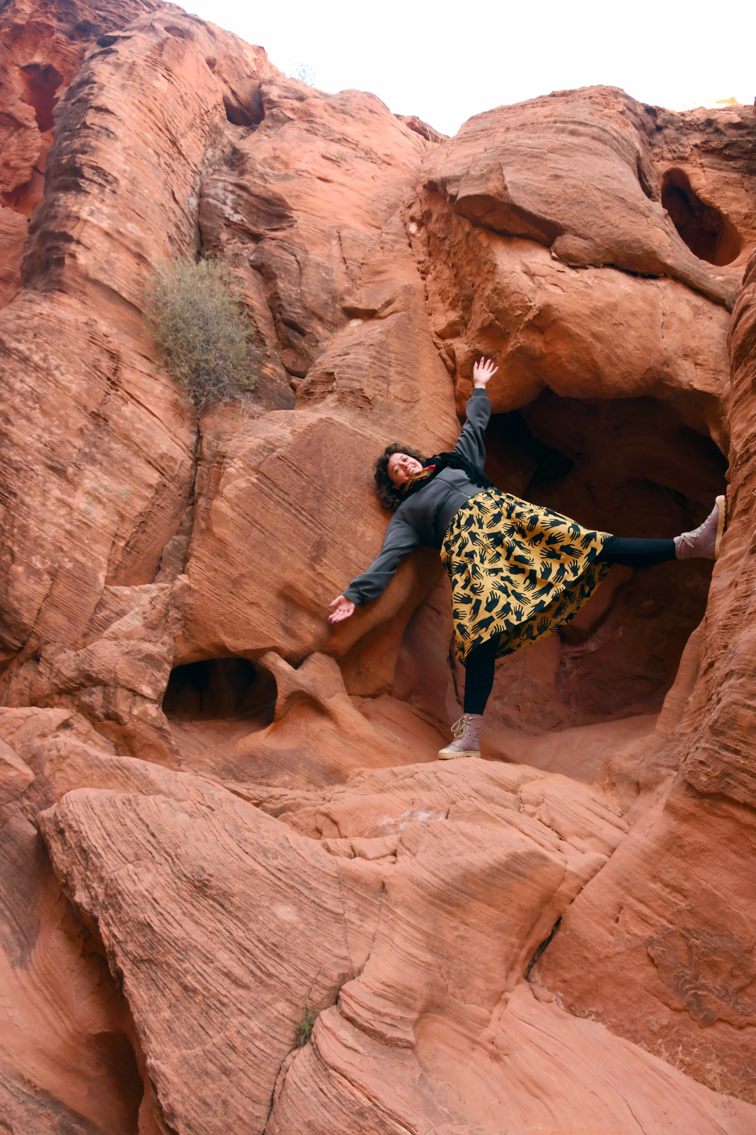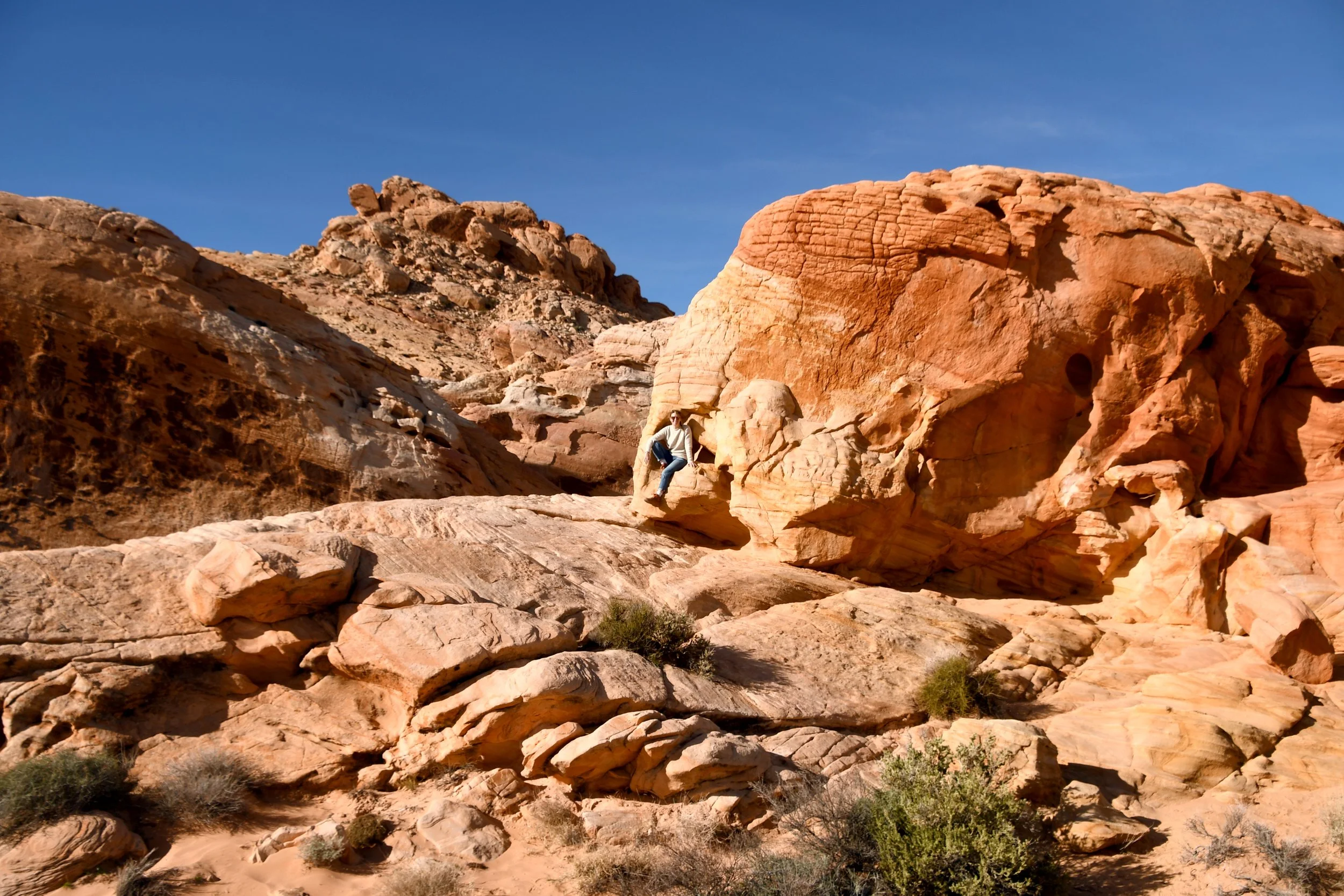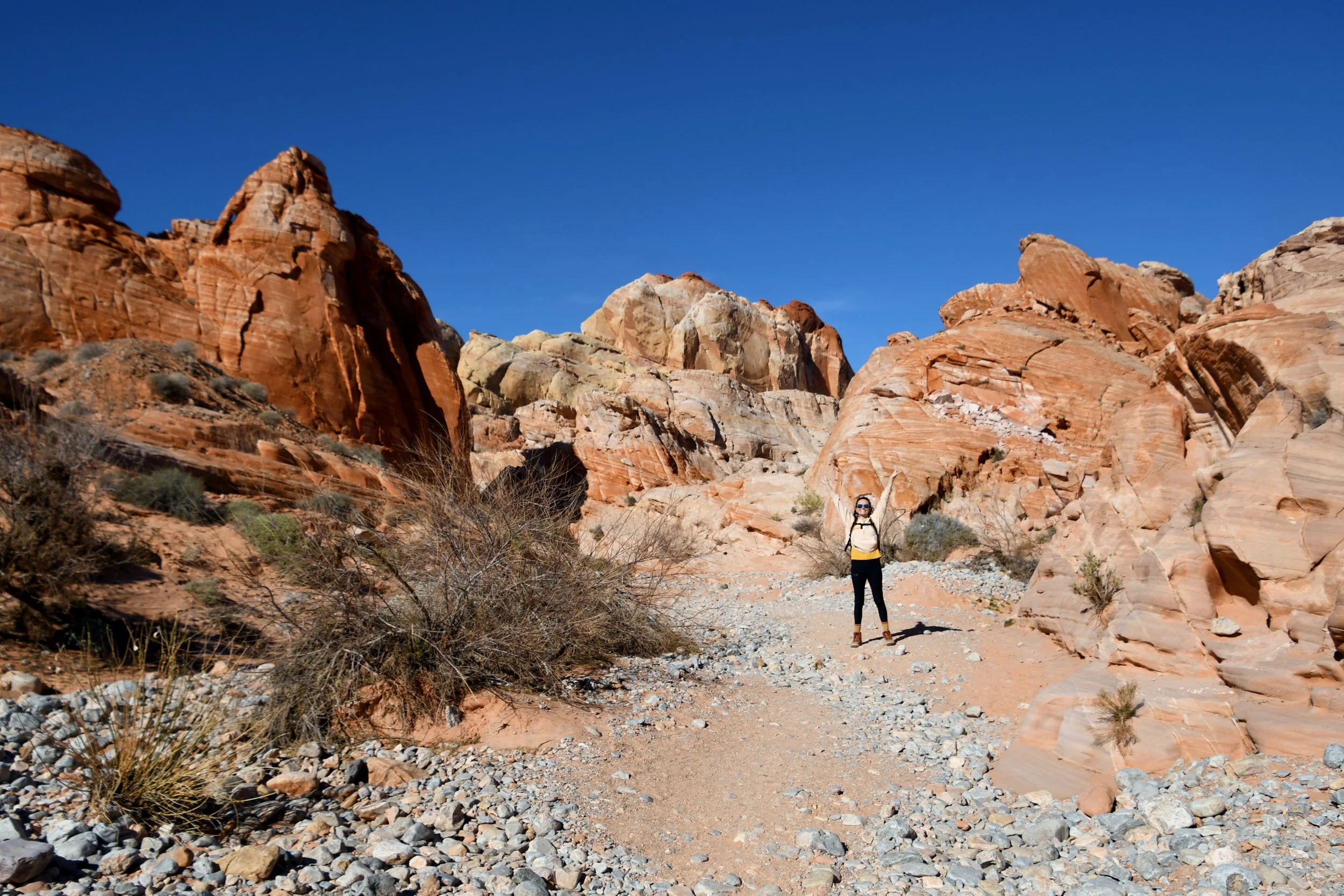 Every January, Megyn comes to California. This year we celebrated her stay with a short visit to The Valley of Fire in the Mojave Desert, and she got another taste of the wild west that lives on repeat in her dreams. We spent two nights at a hotel just by the park entrance, and the mornings drove through the red rocks and winding roads. We stopped at fire waves, pink canyons, and sought out petroglyphs. It was a small park, and we enjoyed the short trails and the many nooks to crawl into and the large rocks to climb upon.