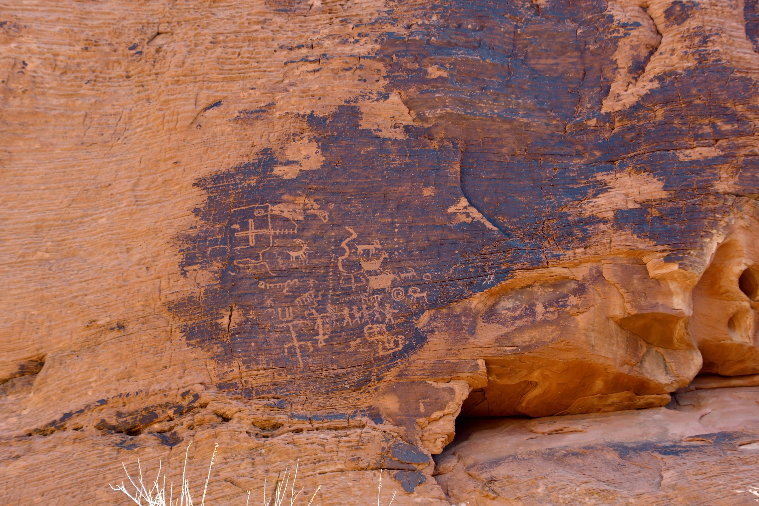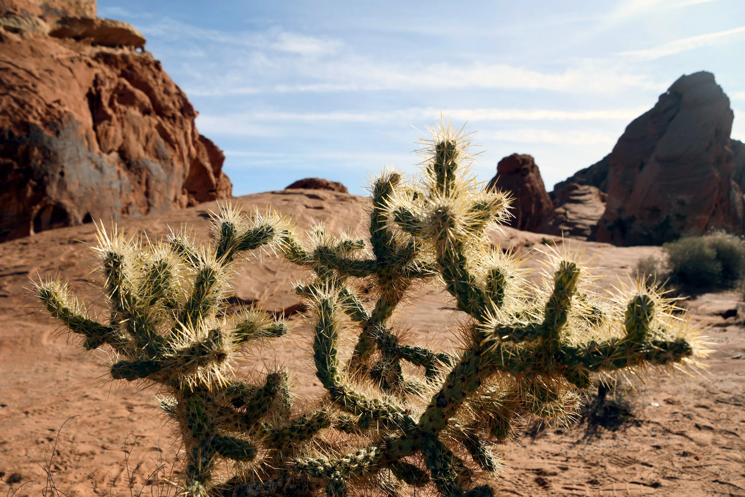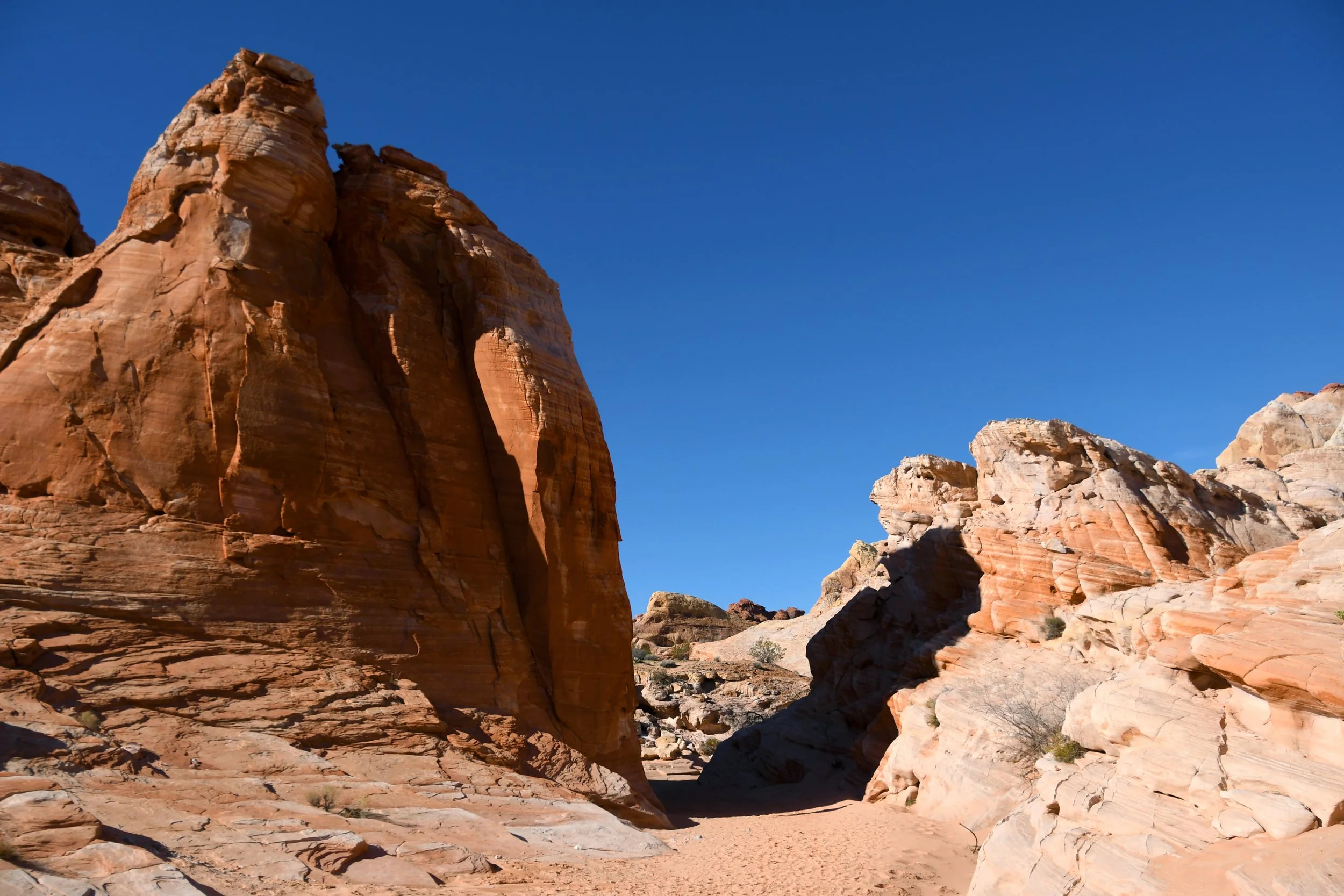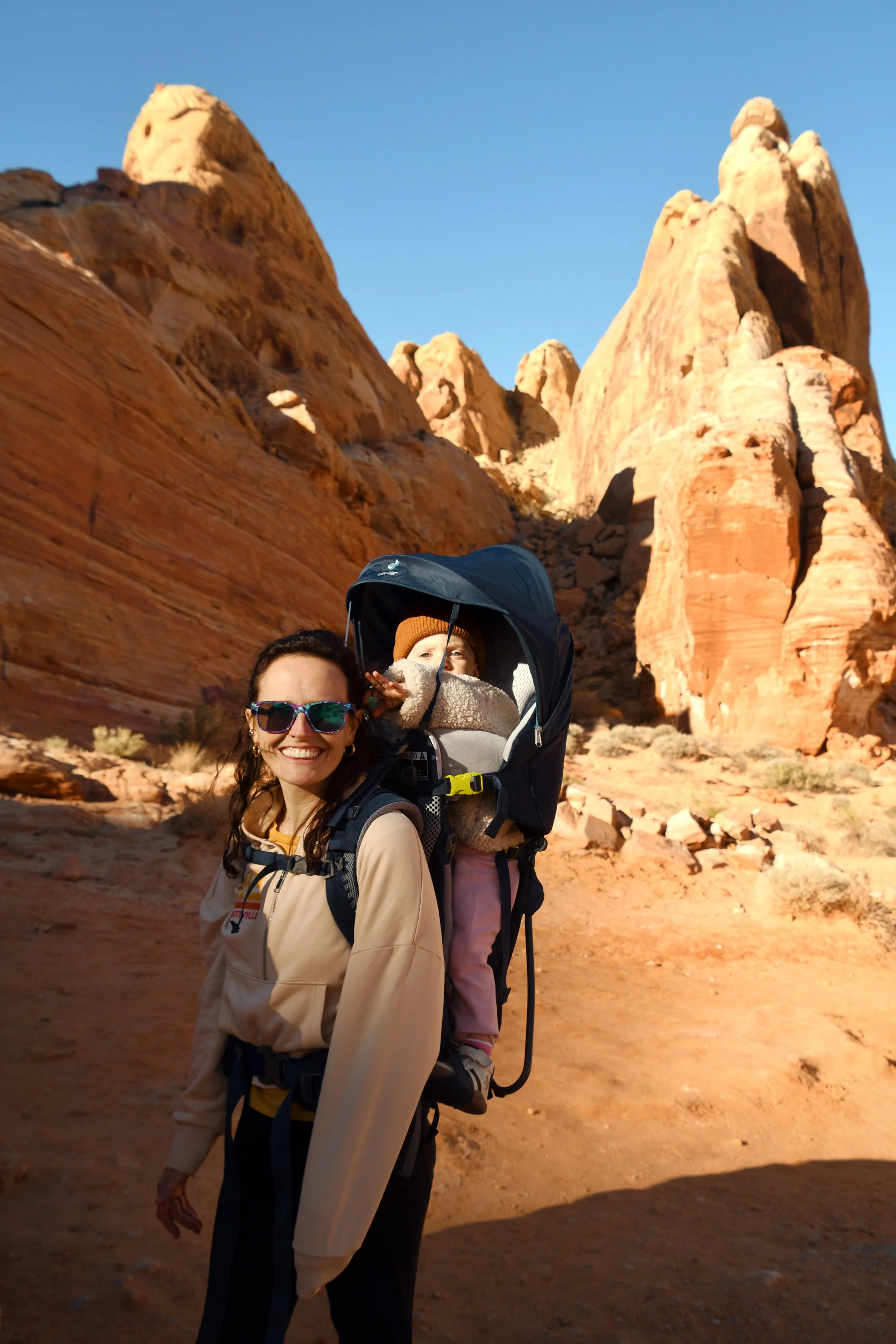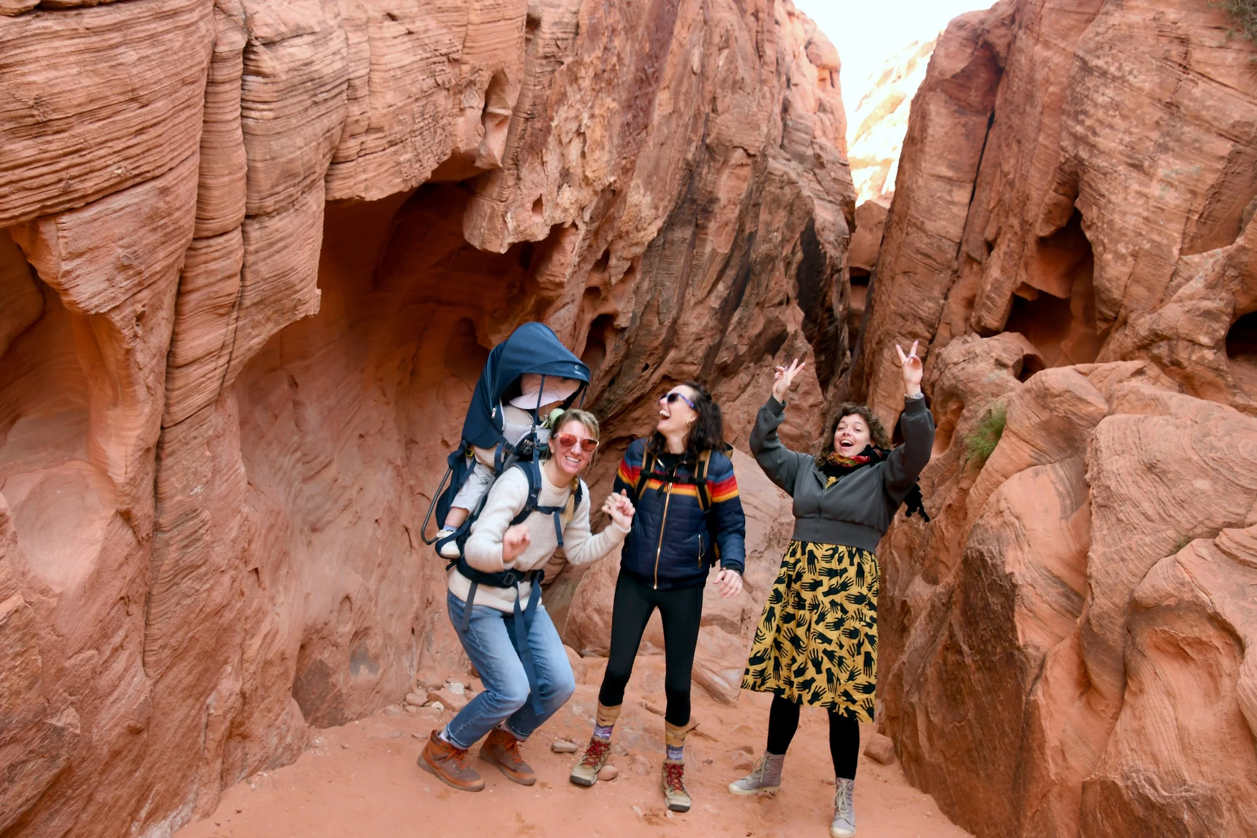 Every January, Megyn comes to California. This year we celebrated her stay with a short visit to The Valley of Fire in the Mojave Desert, and she got another taste of the wild west that lives on repeat in her dreams. We spent two nights at a hotel just by the park entrance, and the mornings drove through the red rocks and winding roads. We stopped at fire waves, pink canyons, and sought out petroglyphs. It was a small park, and we enjoyed the short trails and the many nooks to crawl into and the large rocks to climb upon.