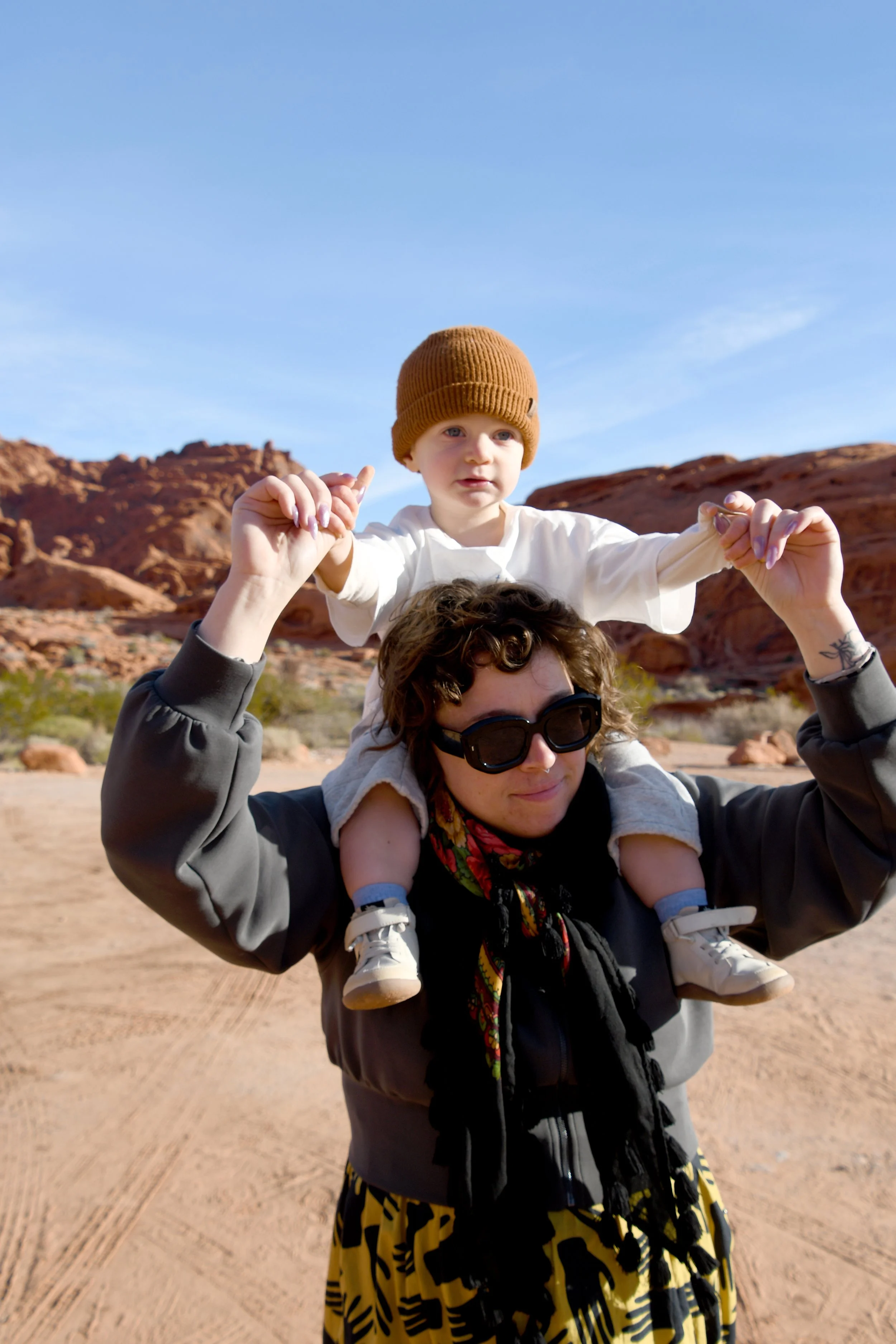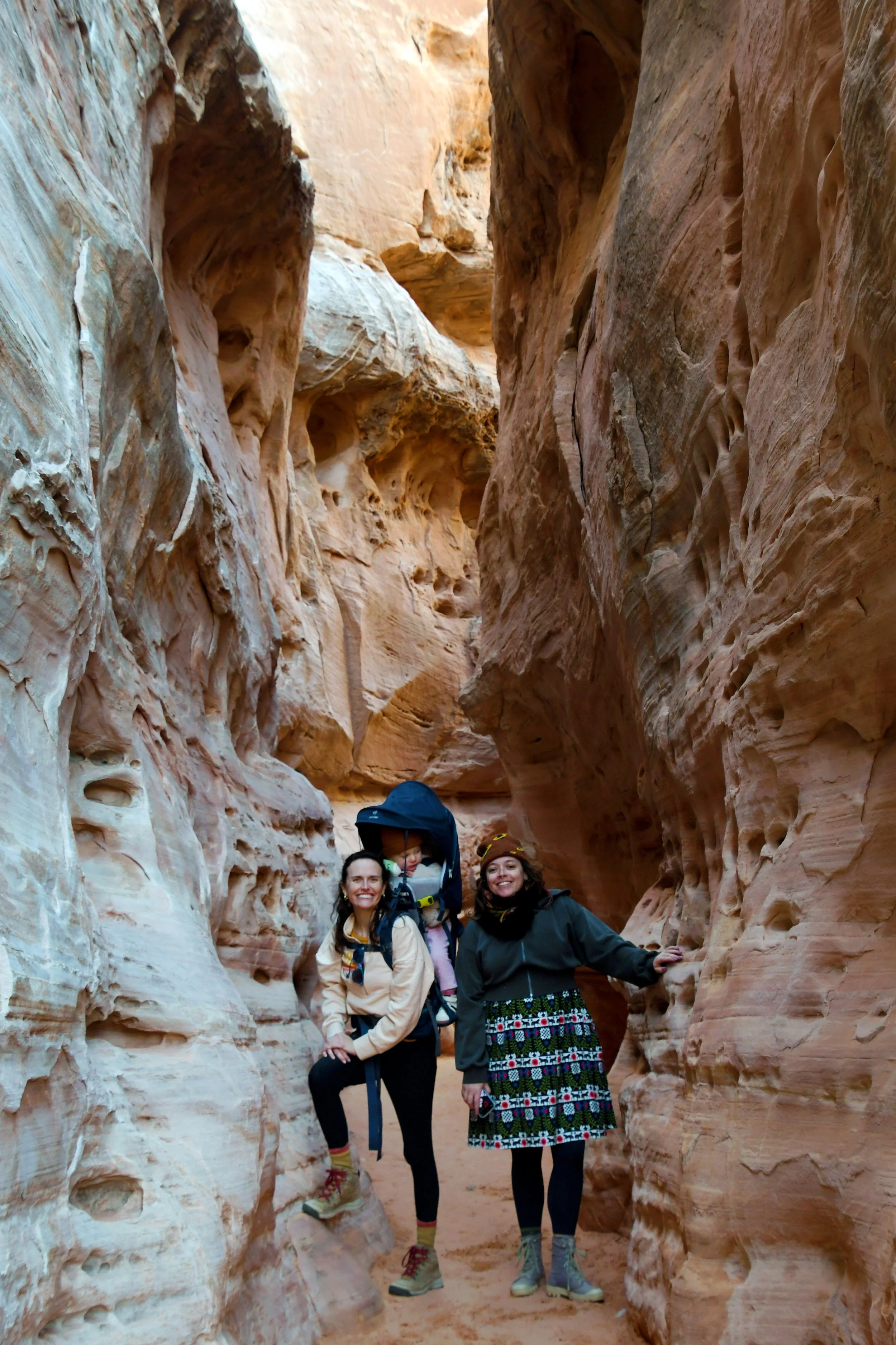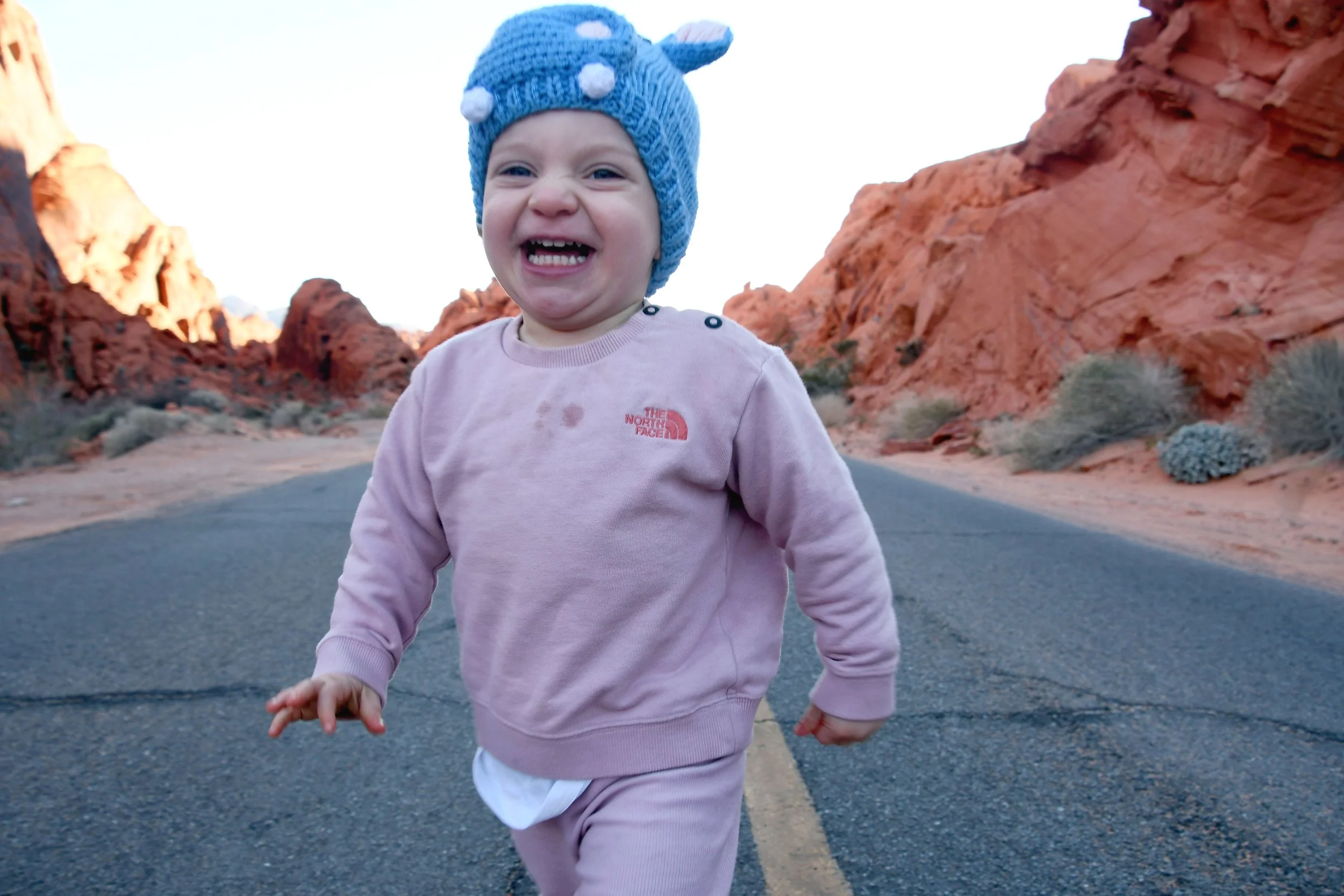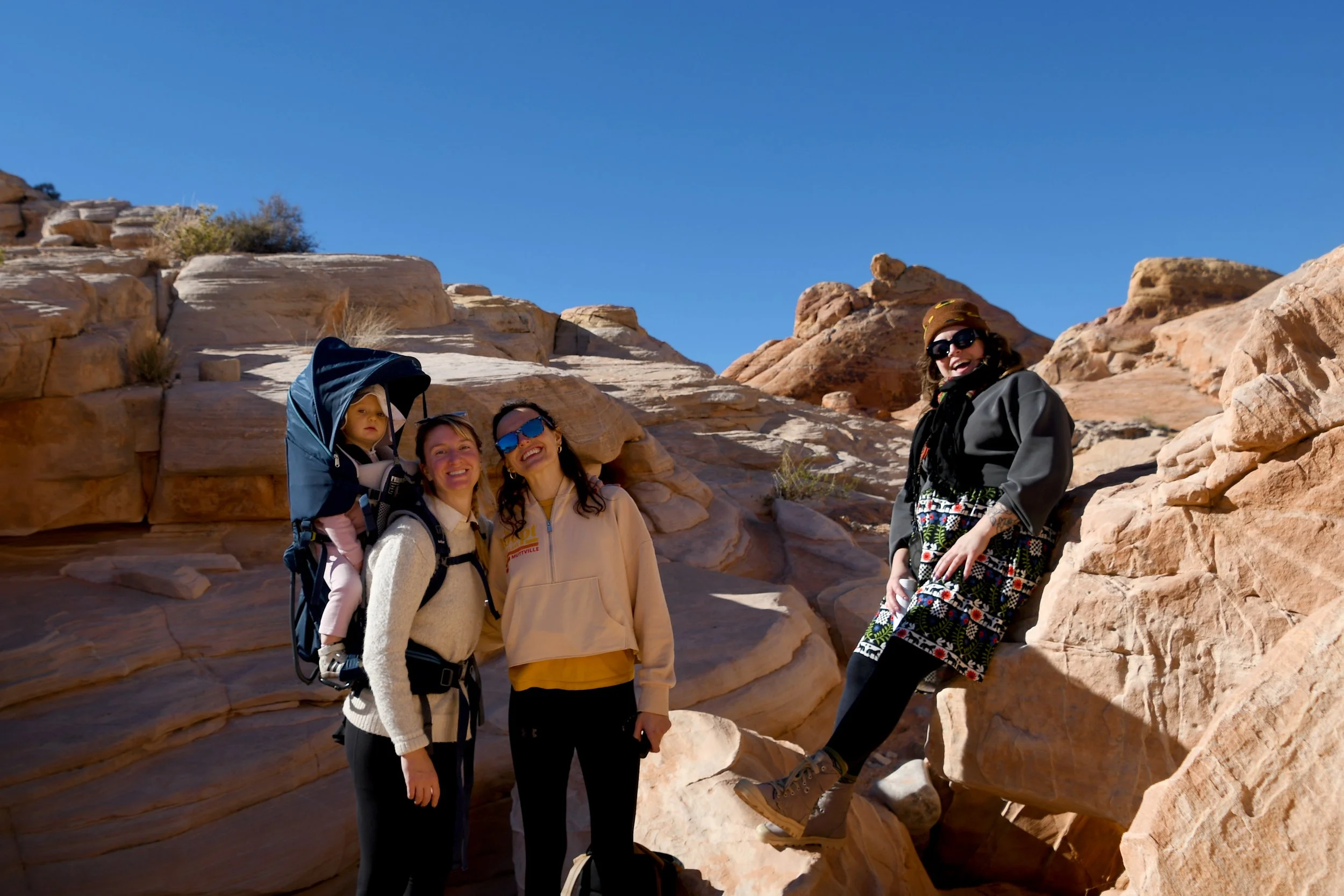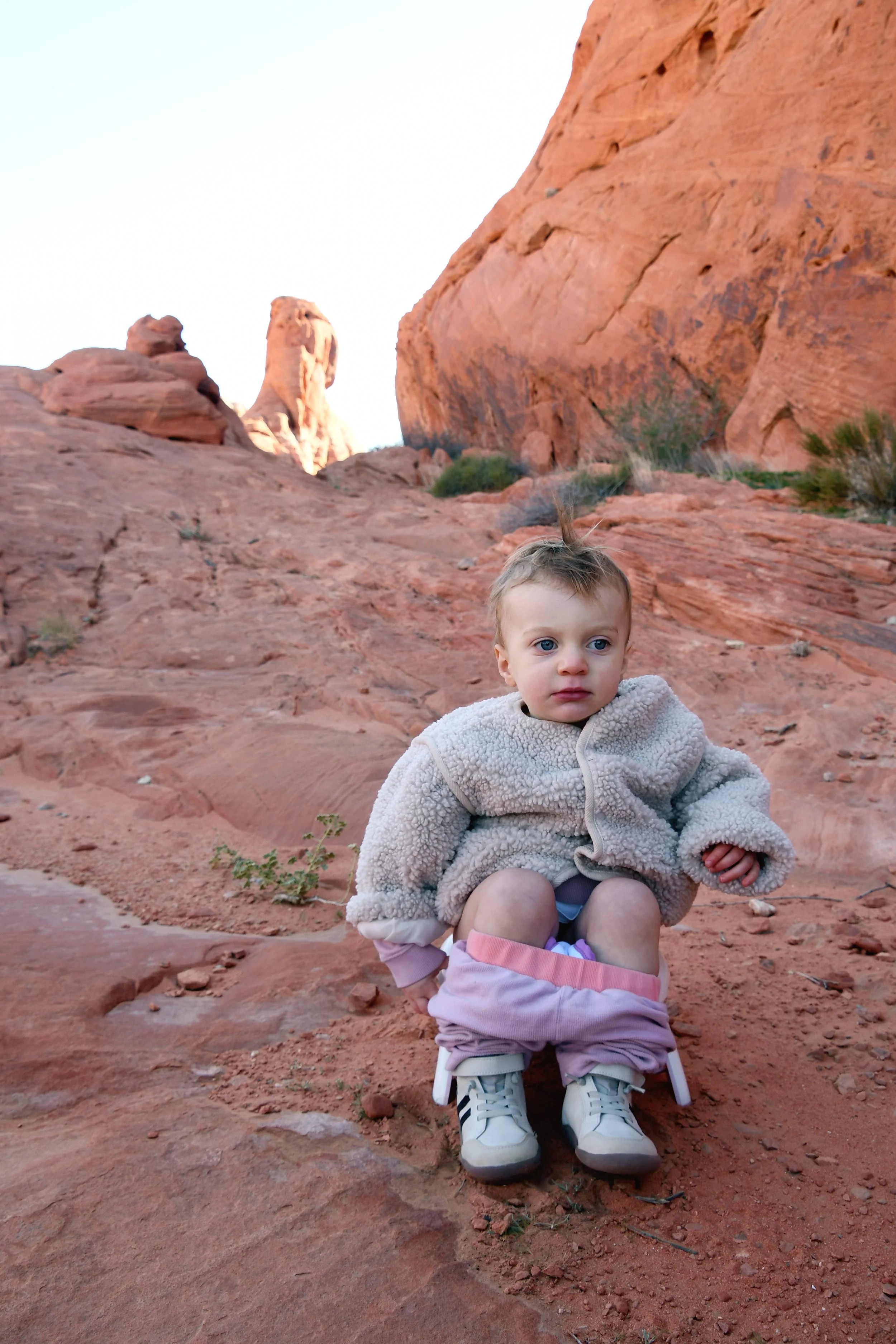 Bronte made homes inside of beehive canyons and rock openings, placed rocks in smooth grooves within slot canyons, and climbed stones only to run off of them at full speed. We hiked with hearts full as Bronte sang to us, and our minds exploded when we heard her spell her name. We had a picnic on red rocks, and drank cold beer in a Mexican restaurant at night. We tried to catch the morning light with a photo shoot in the winding roads, and made sure that Bronte’s toilet was set up in the prettiest spots - with a view. We had a fast car, certainly, but we took our time. It was a short vacation that solidified Megyn into Bronte’s core family unit.