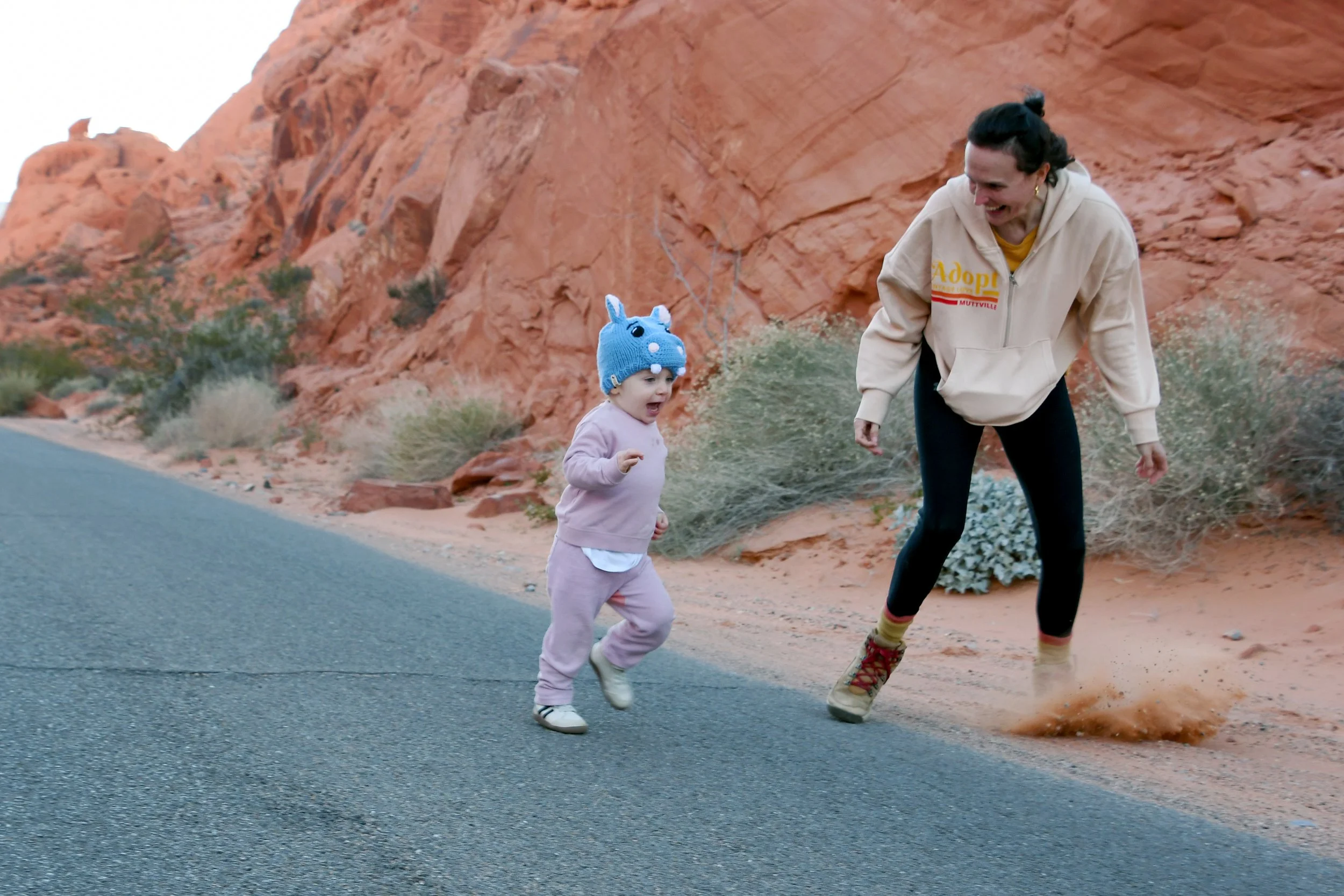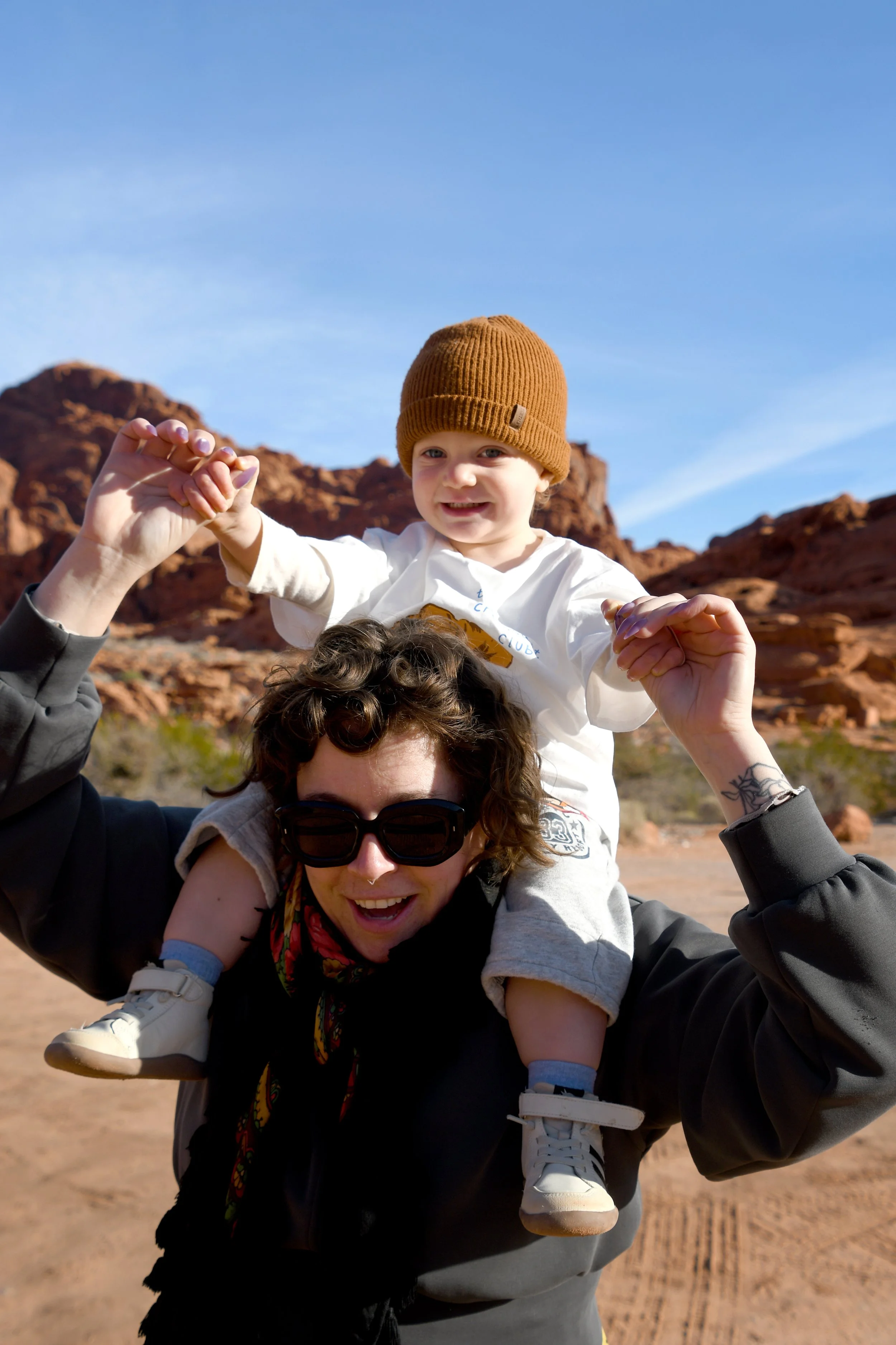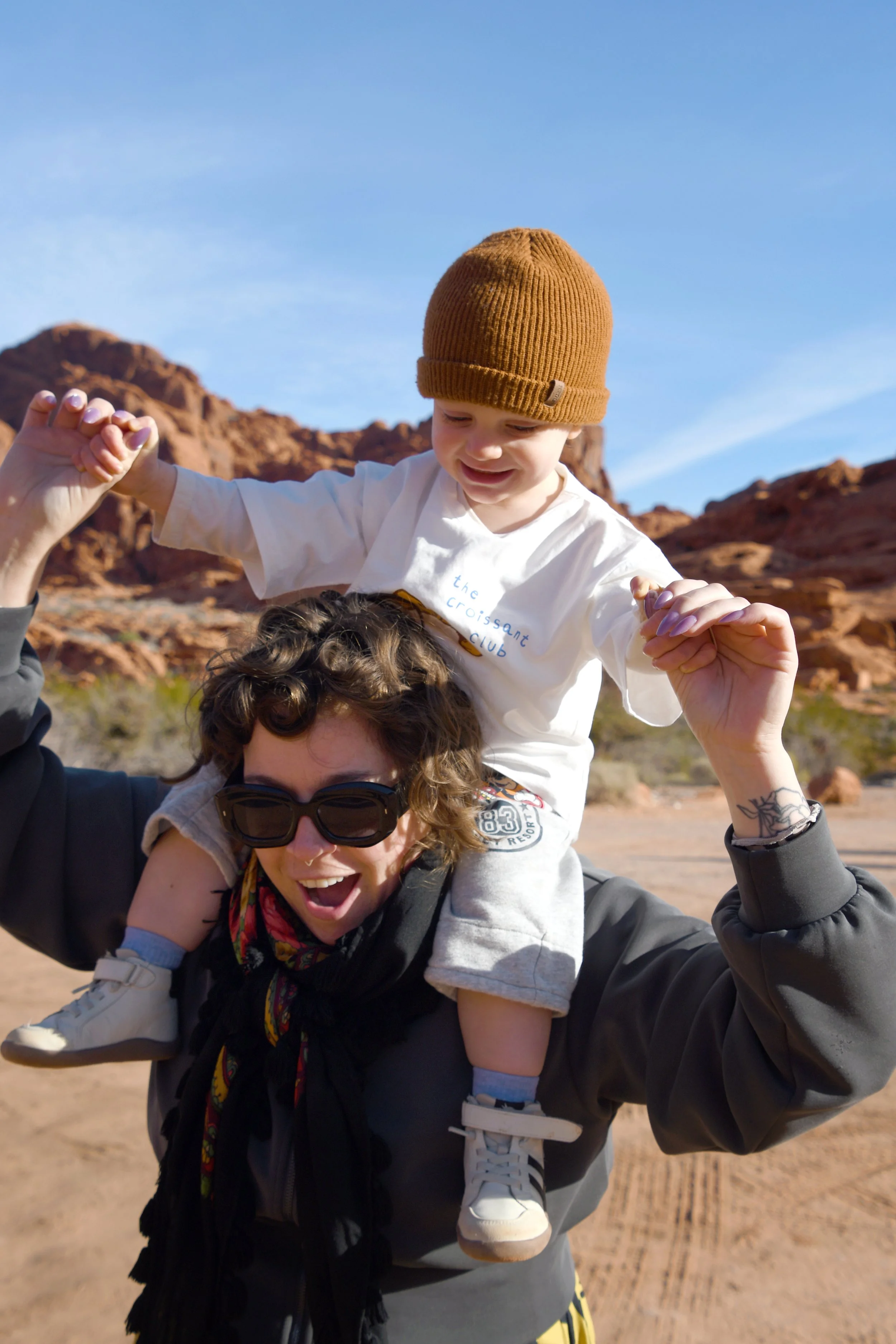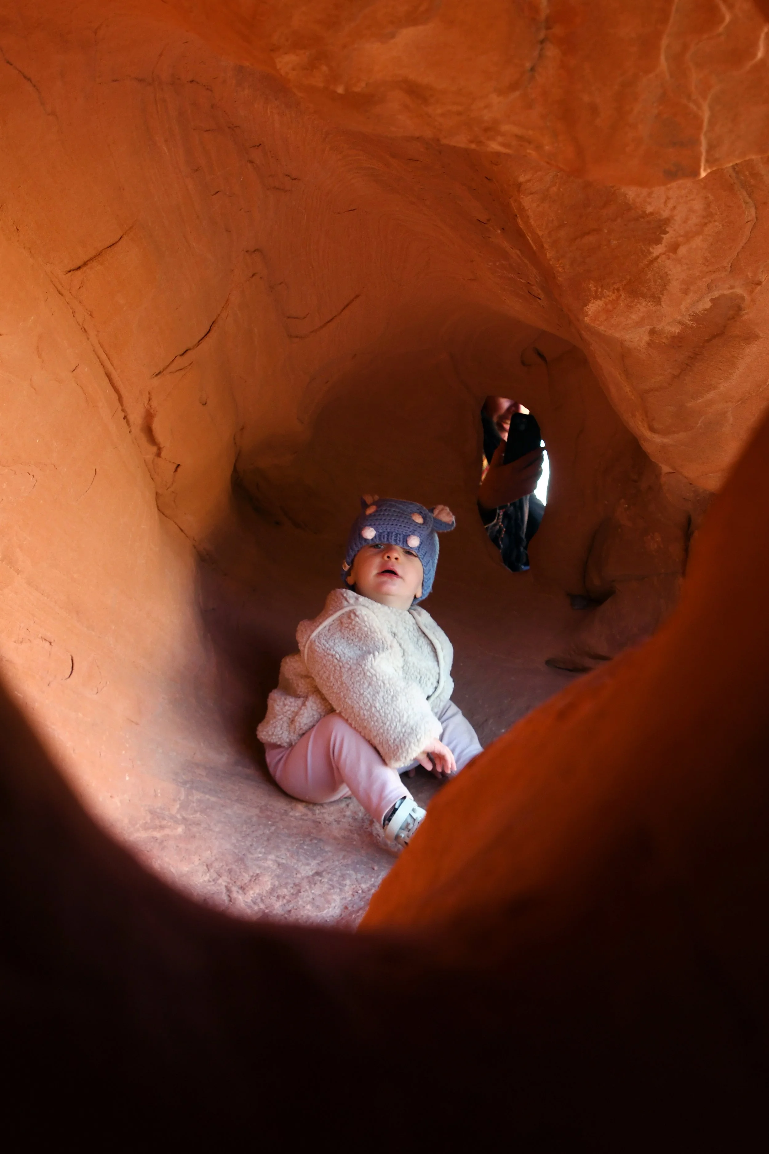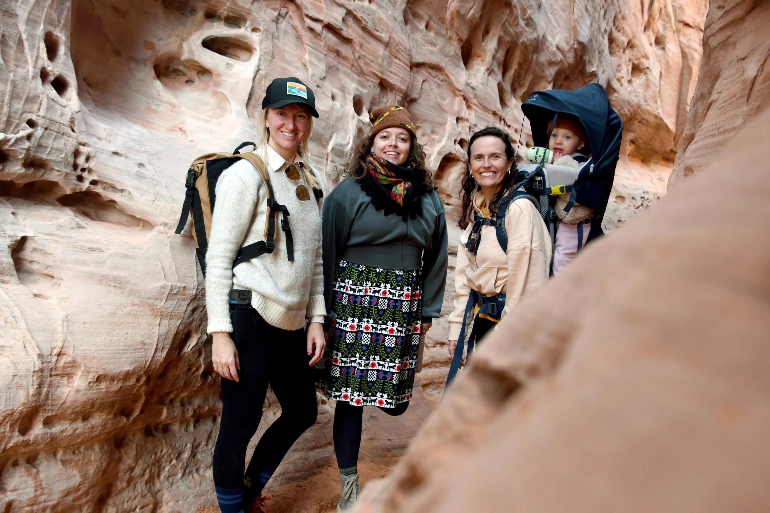 Bronte made homes inside of beehive canyons and rock openings, placed rocks in smooth grooves within slot canyons, and climbed stones only to run off of them at full speed. We hiked with hearts full as Bronte sang to us, and our minds exploded when we heard her spell her name. We had a picnic on red rocks, and drank cold beer in a Mexican restaurant at night. We tried to catch the morning light with a photo shoot in the winding roads, and made sure that Bronte’s toilet was set up in the prettiest spots - with a view. We had a fast car, certainly, but we took our time. It was a short vacation that solidified Megyn into Bronte’s core family unit.