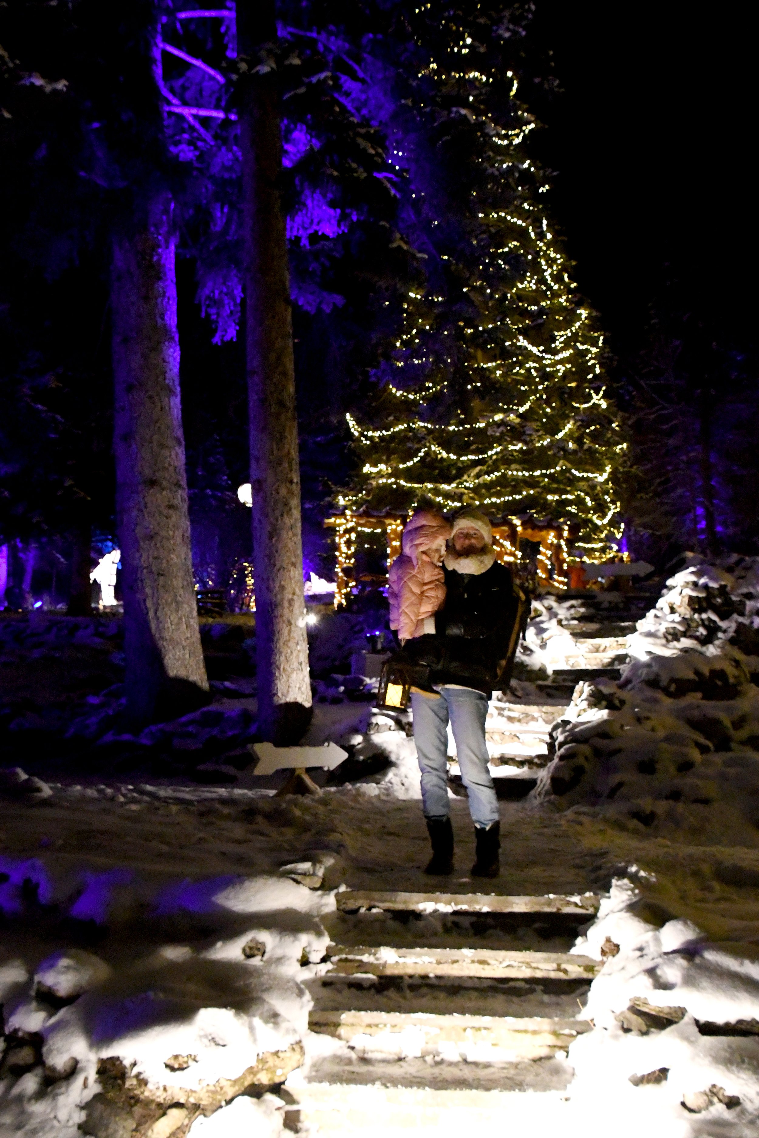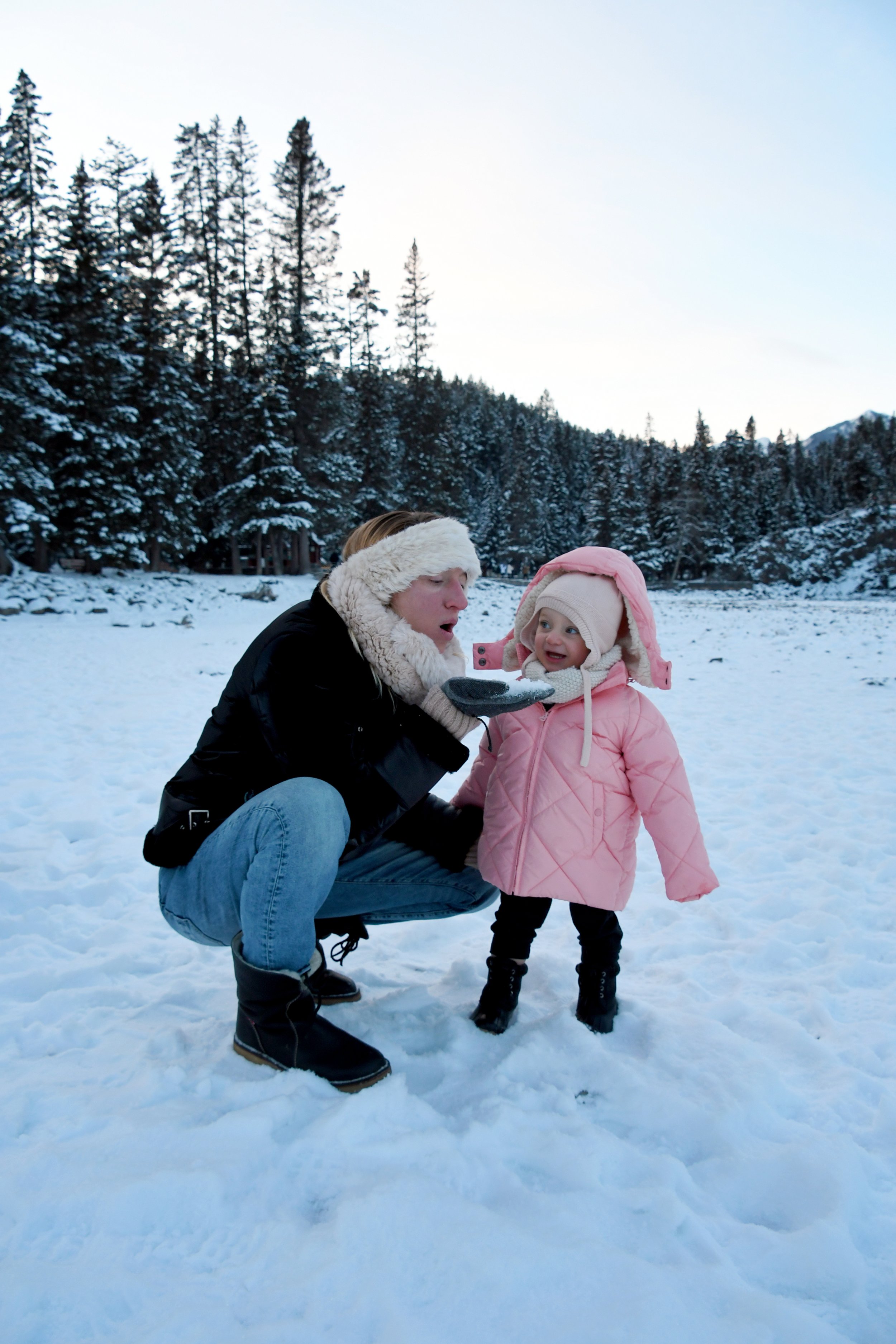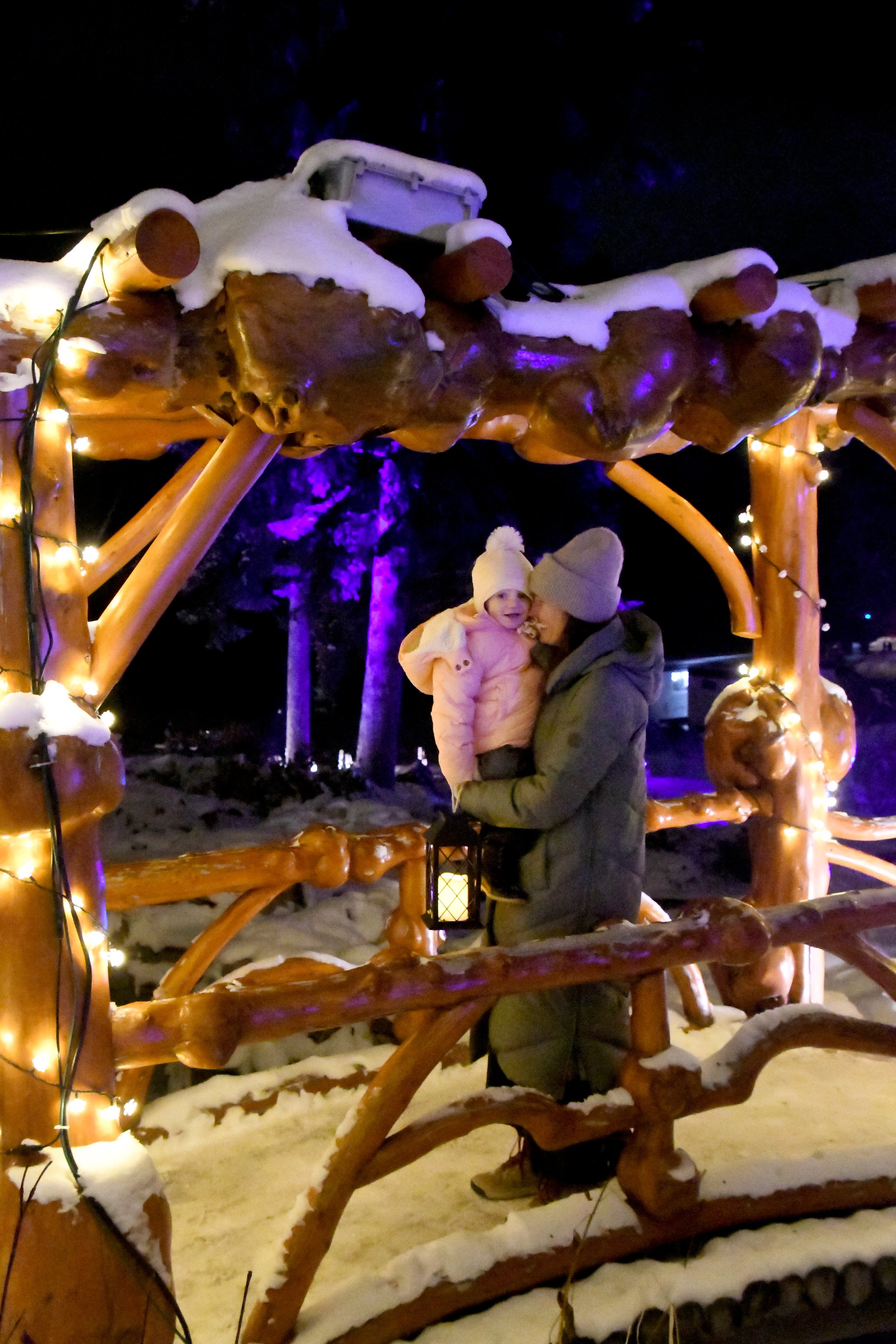 Being in Canada felt like such a relief - we got to escape our lives for a 5 day adventure in the cold wild of the Canadian Rockies. By day two, Bronte was over the cold and the snow, and wanted to be carried everywhere. Luckily, during our walk “In Search of Christmas Spirit,” she carried her little lantern to discover lit up statues of bears, owls, wolves, and fish. She made all the animal noises, and enjoyed the story of the owl calling on all creatures to help remind humans that Christmas was a time of loving land and ALL the people that inhabit it. The Christmas Market was at the train station in town, and we felt the rattling of the train as we sipped our peppermint hot cocoas. Bronte got to see Santa, listen to carolers, and eat by a fire pit.