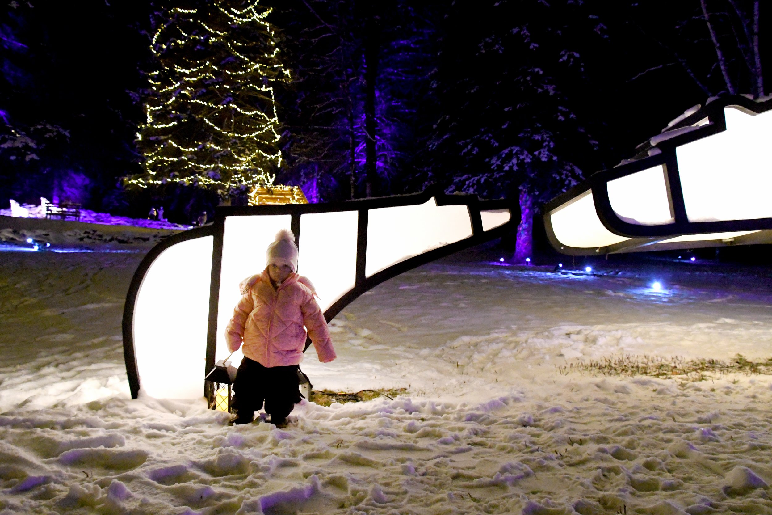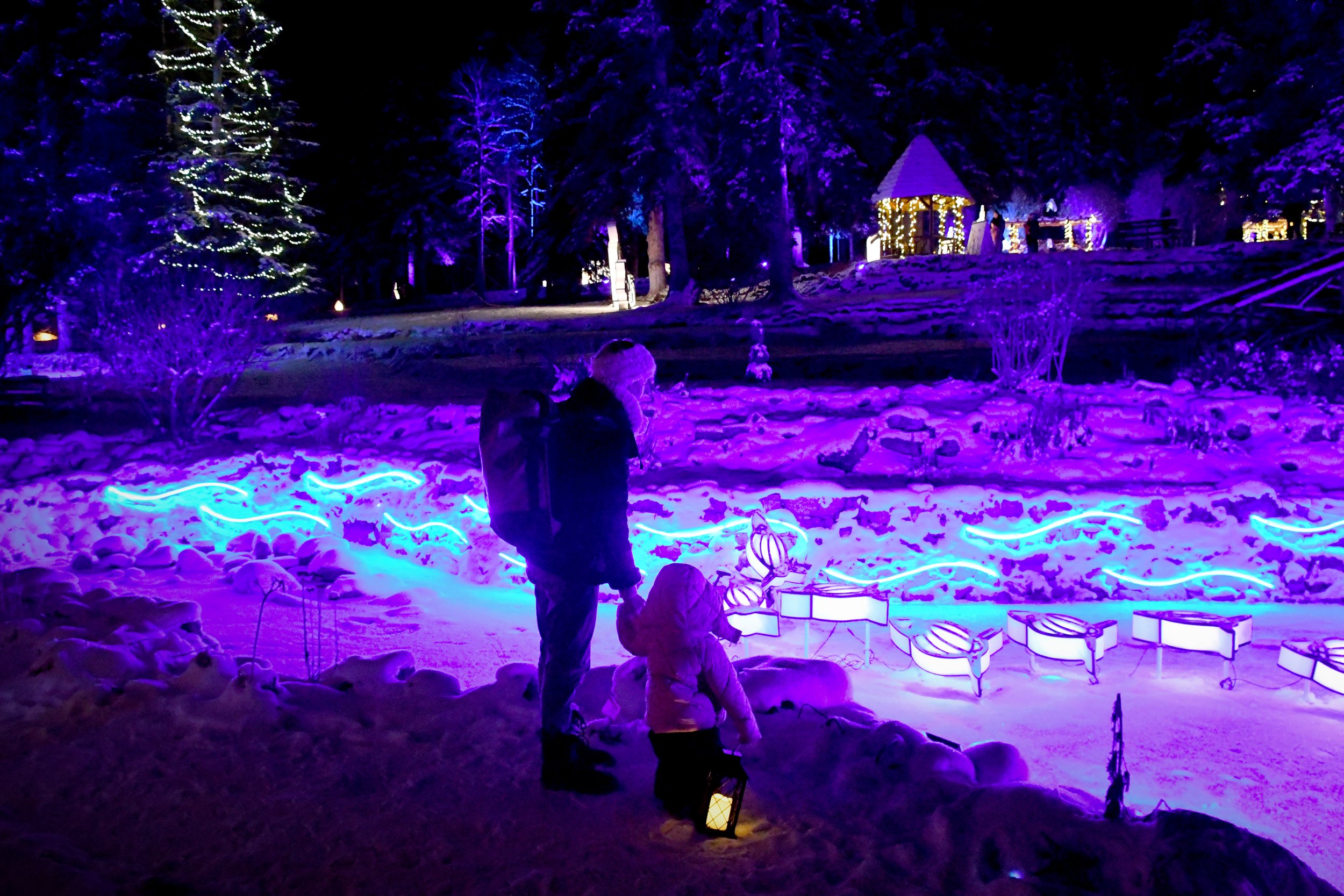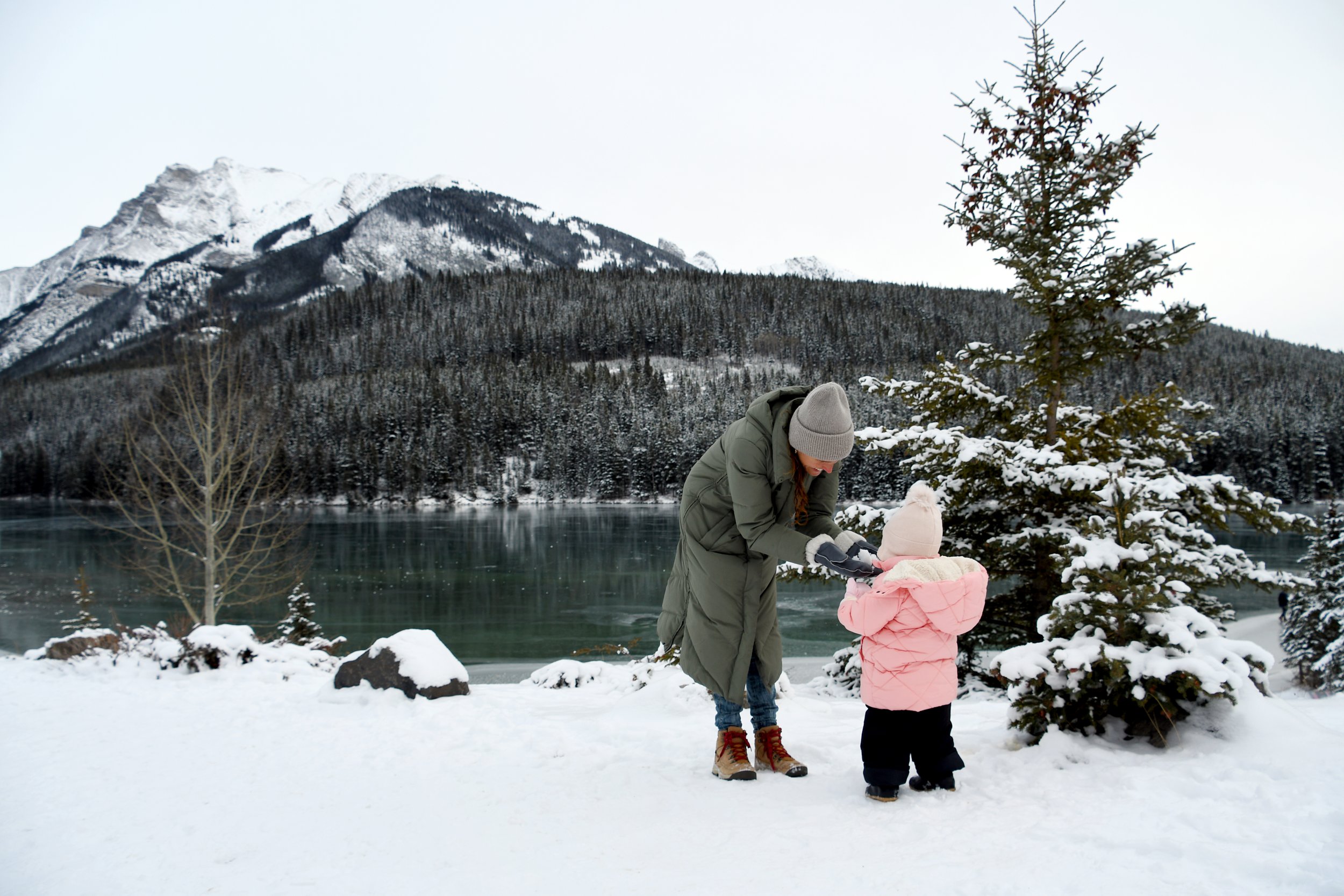 Being in Canada felt like such a relief - we got to escape our lives for a 5 day adventure in the cold wild of the Canadian Rockies. By day two, Bronte was over the cold and the snow, and wanted to be carried everywhere. Luckily, during our walk “In Search of Christmas Spirit,” she carried her little lantern to discover lit up statues of bears, owls, wolves, and fish. She made all the animal noises, and enjoyed the story of the owl calling on all creatures to help remind humans that Christmas was a time of loving land and ALL the people that inhabit it. The Christmas Market was at the train station in town, and we felt the rattling of the train as we sipped our peppermint hot cocoas. Bronte got to see Santa, listen to carolers, and eat by a fire pit.