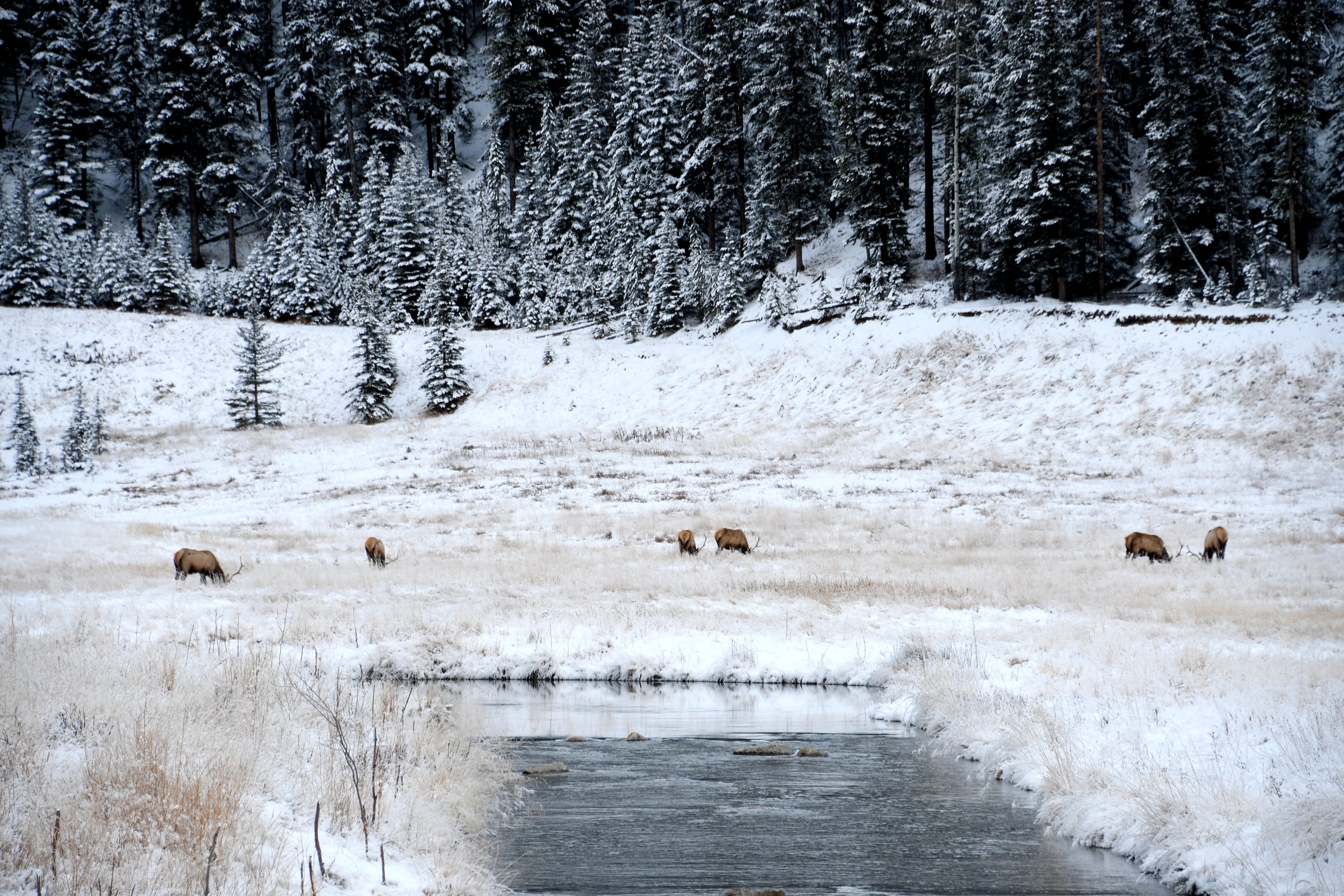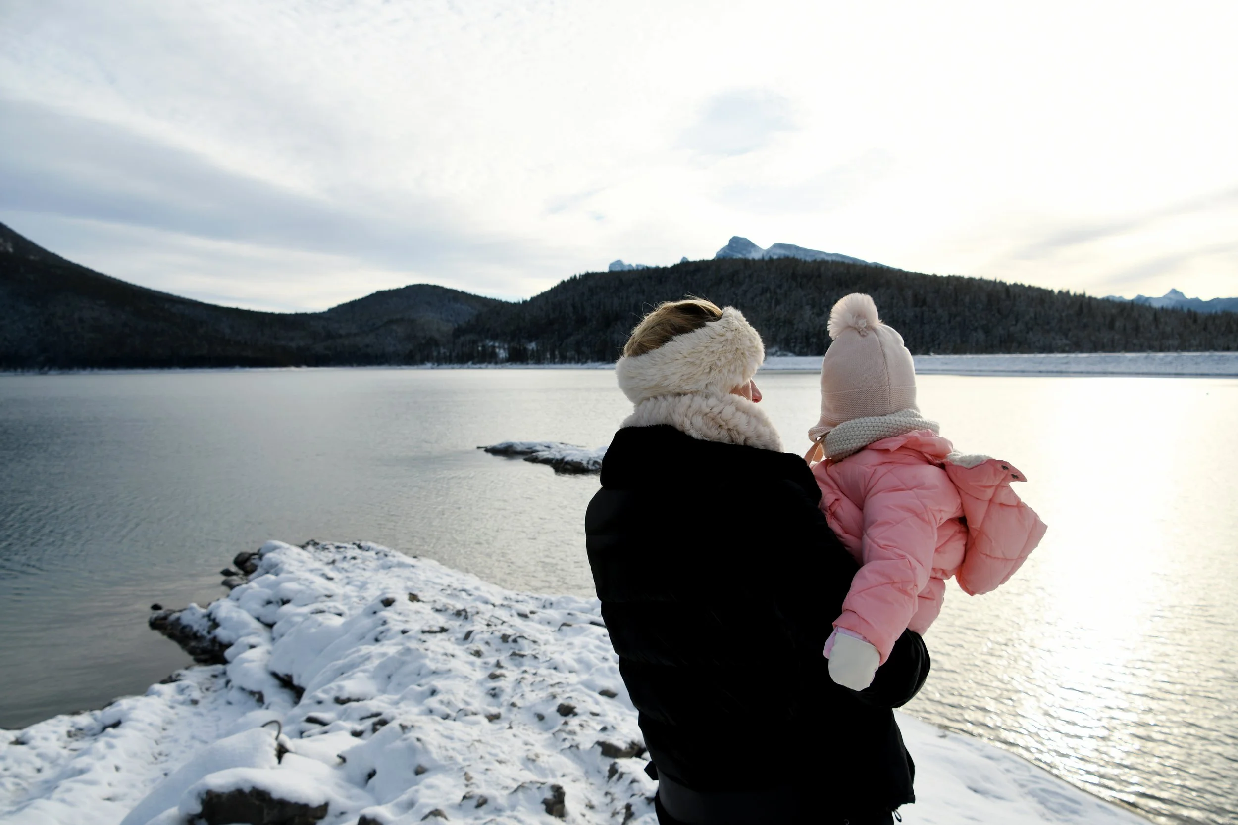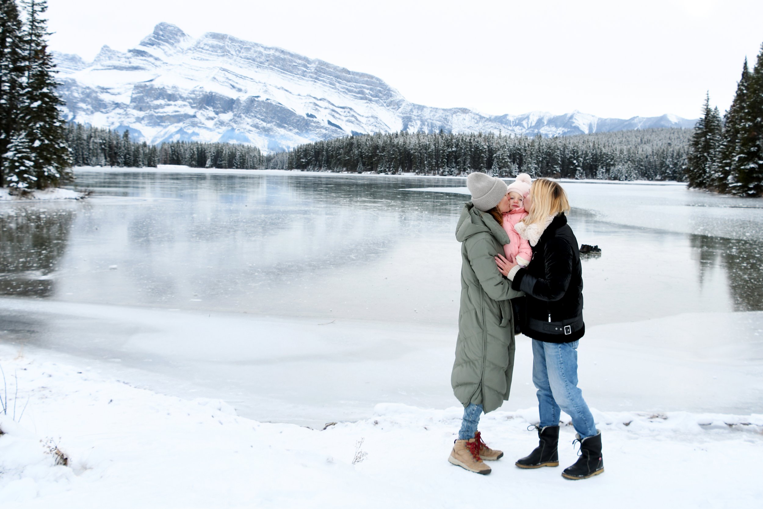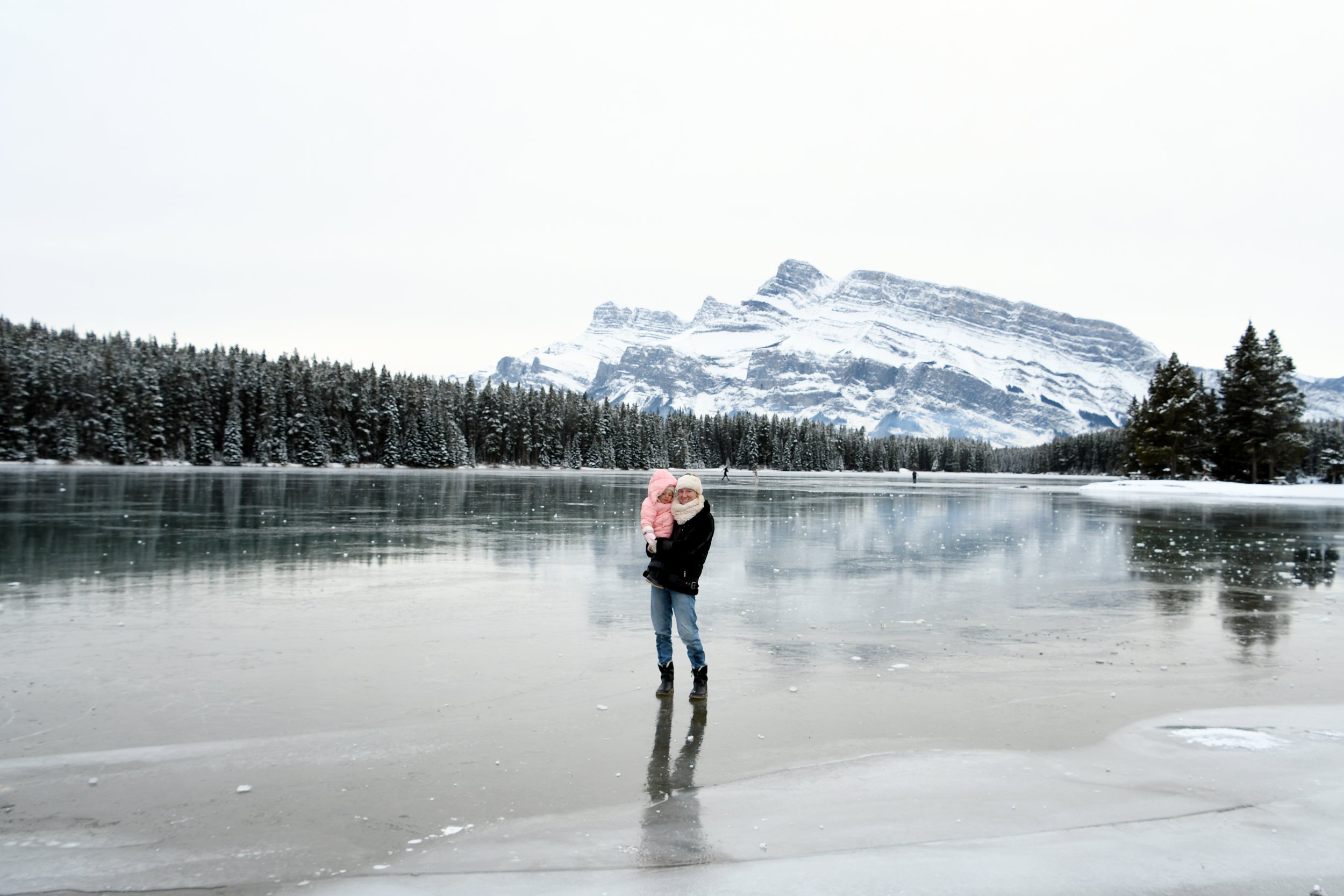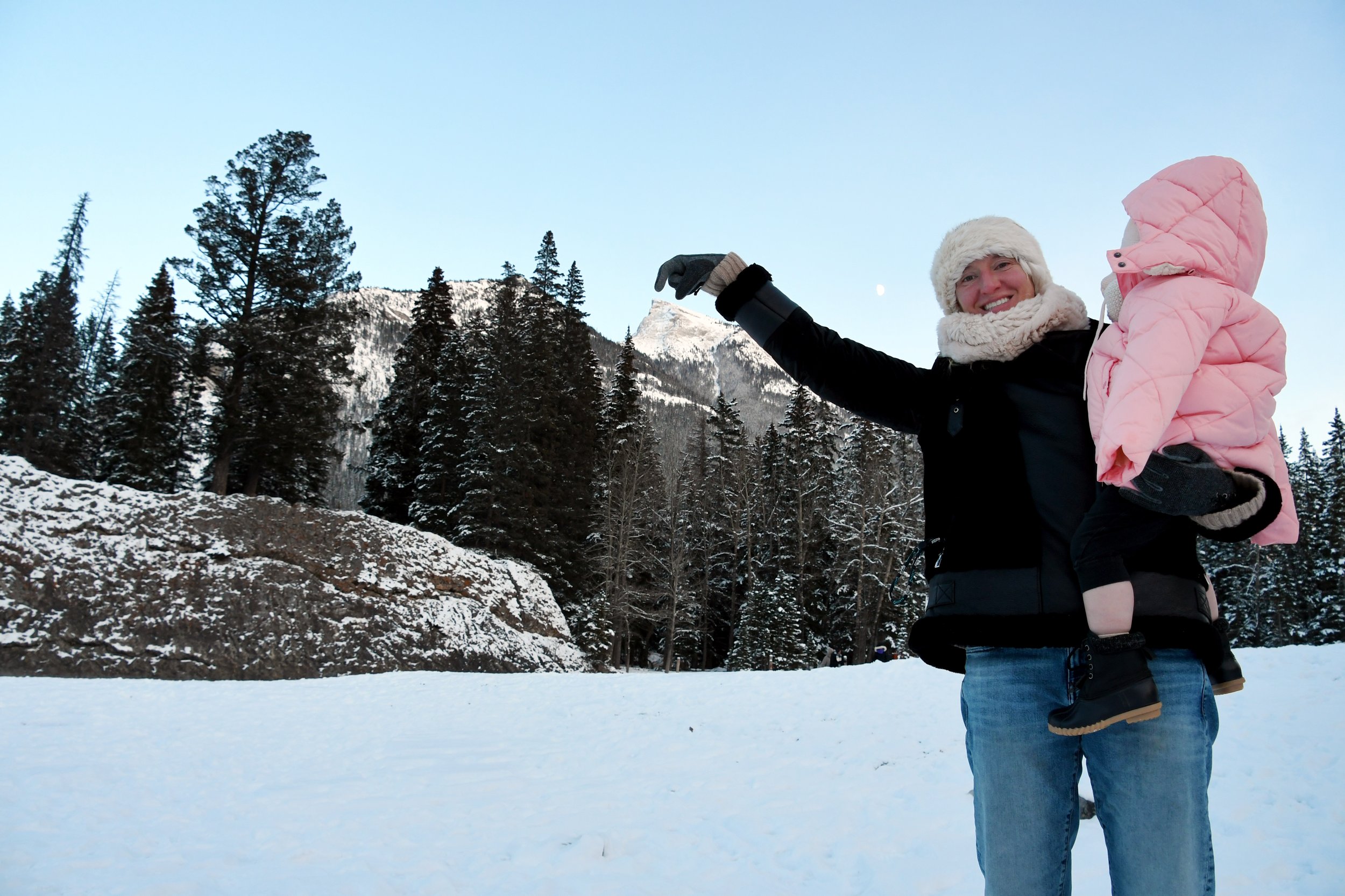 Some of our favorite memories were Bronte using her tiny travel toilet in some of the most beautiful off road pull outs, and going to see elk while she slept in her car seat. Walks along lakes were short, but sweet, as our arms could carry Bronte for so long. Snow was fun to pick up and put in her mouth, but walking on it seemed like too much effort apparently. The lakes had all frozen over, and we walked along its edge as we watch ice skaters whirl around us.