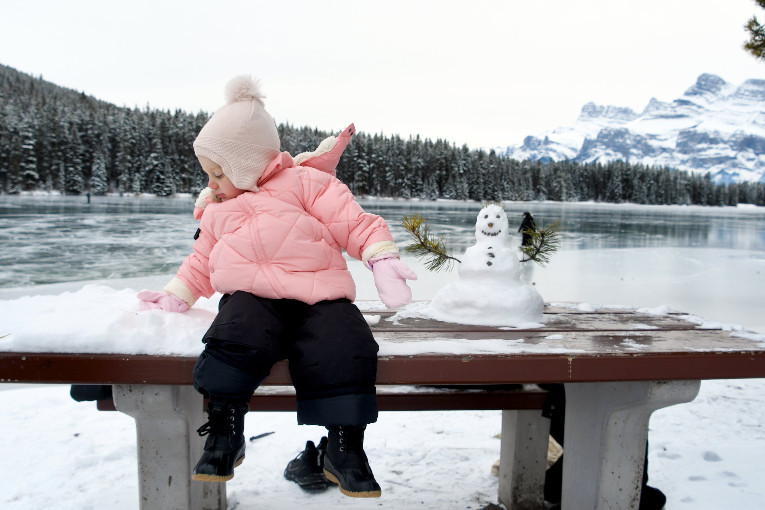 For the hot chocolate trail, we found some gems! The Gingerbread hot cocoas were our favorite, but the sea salt, maple syrup, and burnt marshmallows were also up there. At the Fairmont Banff Springs, we got to stay at the renowned castle hotel again. They even upgraded our room, and we got the Hallmark experience: a two bathroom, bedroom, and living room with a Christmas tree that filled up on corner up to the ceiling. During one of Bronte’s nap, I worked on a gingerbread house, while Jamie was Christmas shopping, a Hallmark movie on in the background. We had a babysitter watch Bronte as we hung out in the spa and booked a massage. Bronte would wake up and started doing freestyle in the air, signaling she wanted to go to the outdoor heated pool. The mountains in the back drop looked like Mount Crumpit, and she loved dunking into the water to keep her hair from becoming icicles.