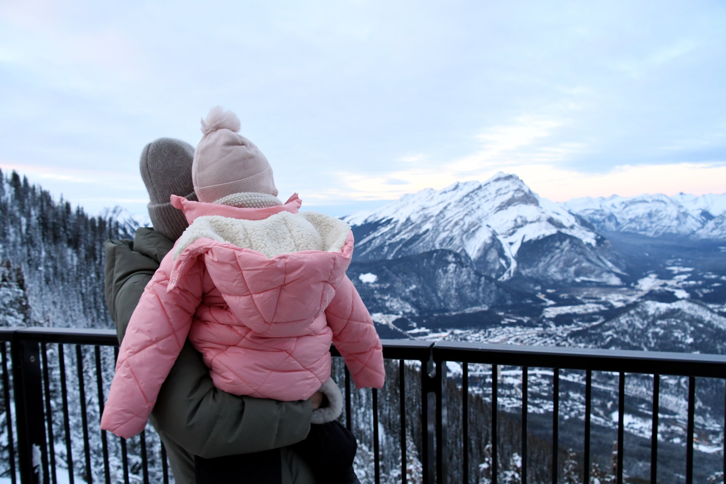 For high tea, Bronte slept the entire time. Jamie and I drank champagne, our favorite holiday teas, and munched on little cakes and deserts with an ease we indulged in. Afterwards, we did a photo shoot in Santa’s sleigh, and went to write Bronte’s letter to Santa. The next day, we found a letter from Santa in our hotel room, written to Bronte in response. The Banff gondola was our last adventure, and Bronte seemed in awe of the views it offered. She is already so fearless.